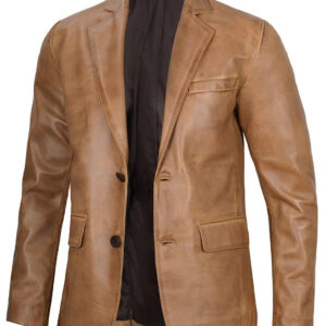 Bryson Women’s Cognac Brown Leather 3/4 Length Coat