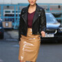 Put a different spin and create an edgy look with a replica of Ashley Roberts Leather Jacket who was seen wearing it at London studios. Display your styling expertise and a modern ladylike look in our chic leather jacket, allowing you to complete your look in a great number of ways.