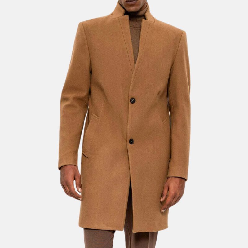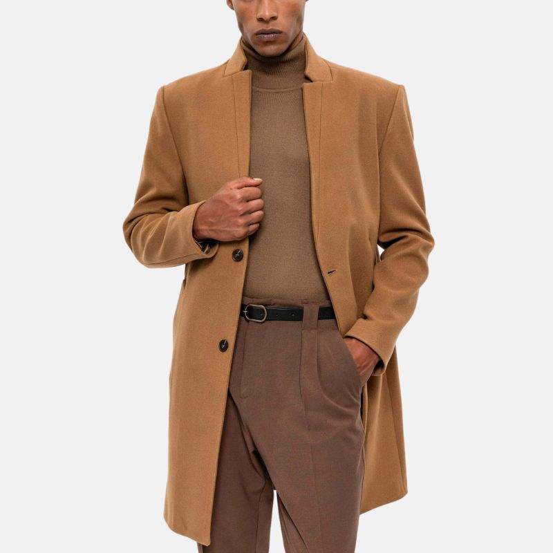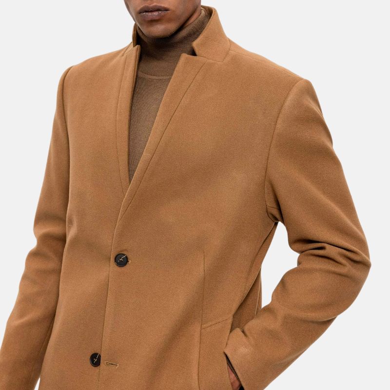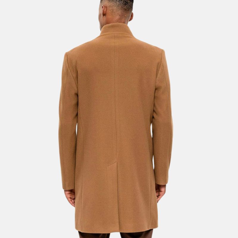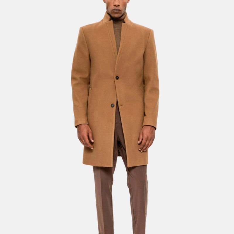Men’s Camel Brown Single Breasted Short Wool Coat