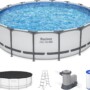 Bestway Steel Pro MAX 16 Foot x 48 Inch Round Metal Frame Above Ground Outdoor Swimming Pool Set