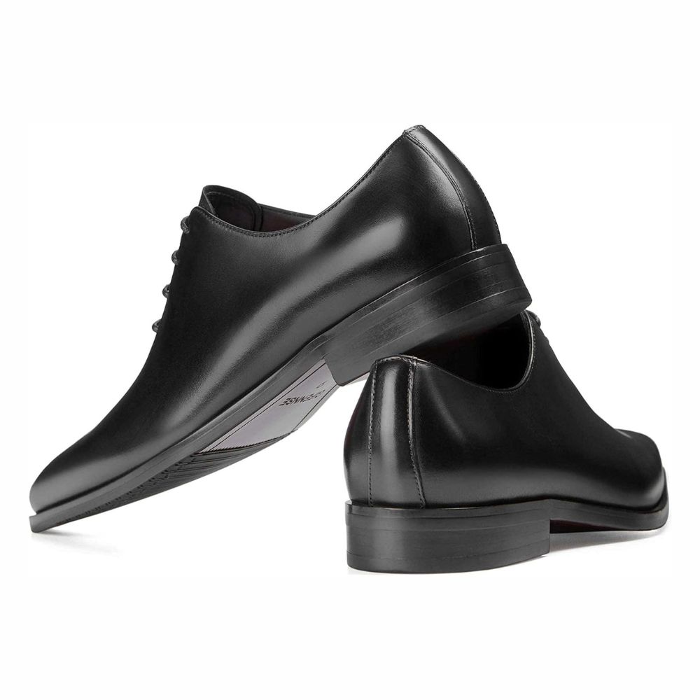 These plain black whole-cut lace-up oxford shoes men. Crafted from premium black leather, these shoes offer a flawless, seamless design that exudes timeless elegance. These Oxford shoes are perfect for formal occasions, business meetings, or any event.