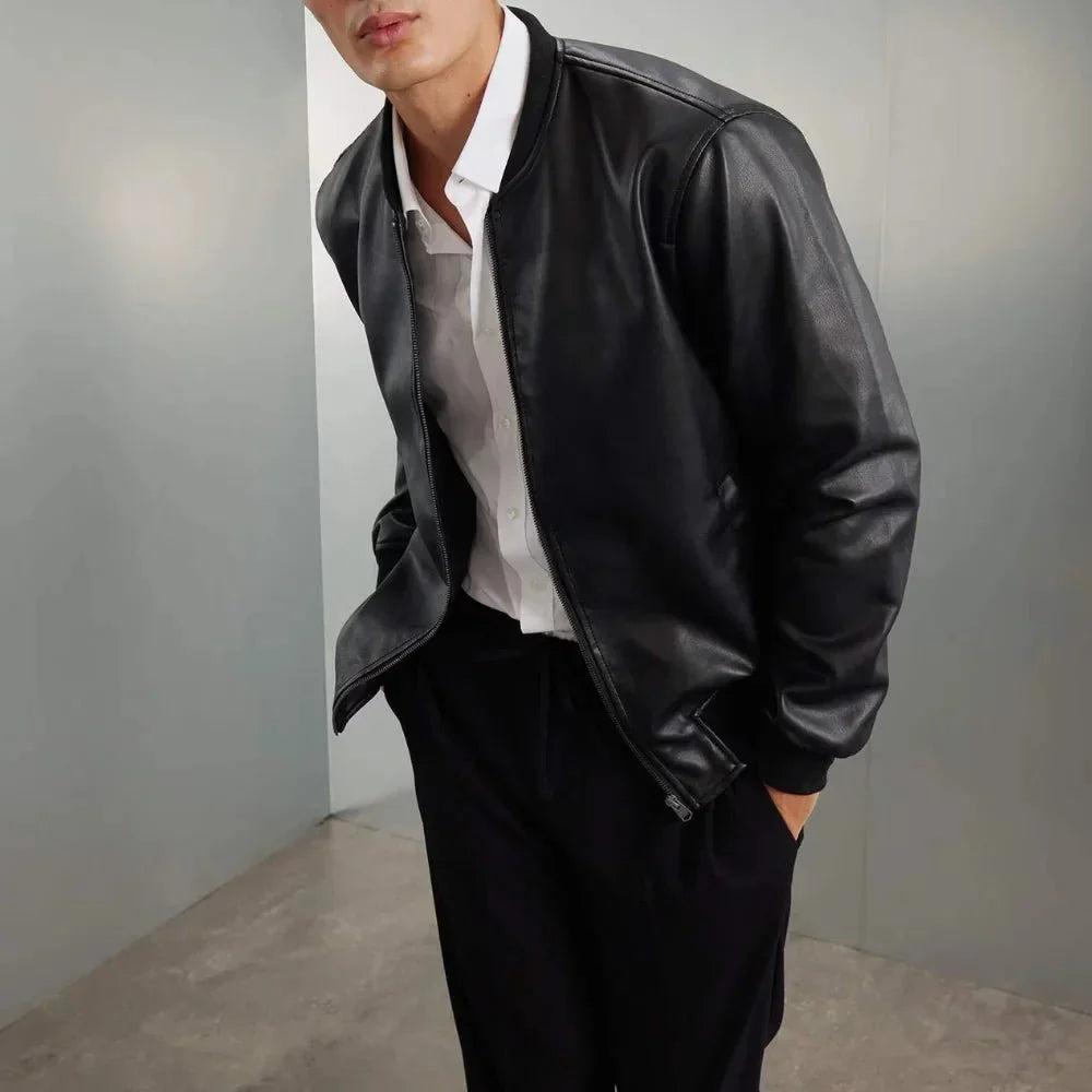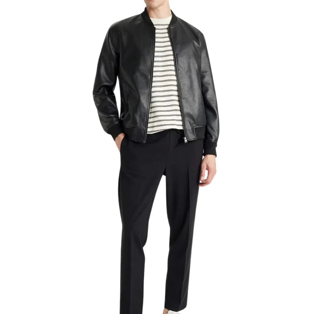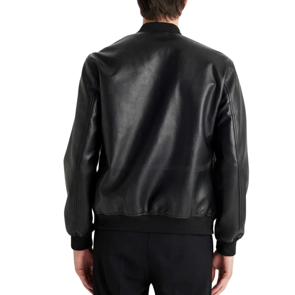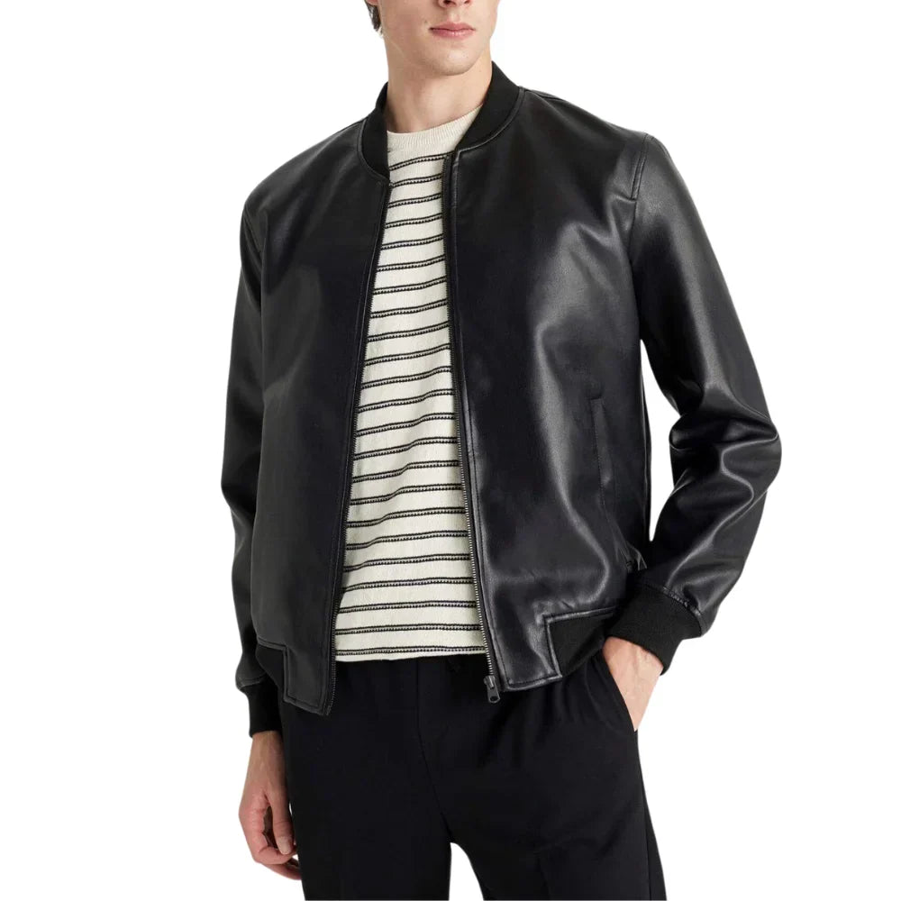 This classic black bomber jacket is made from 100% premium leather, offering durability and style. It features a rib-knitted collar, cuffs, and hemline for a snug, comfortable fit, and a smooth front zipper closure for easy wear. With two side pockets and one inner pocket, this jacket is both practical and sleek. The soft viscose inner lining adds extra comfort, making it the perfect jacket for casual outings and cooler days.