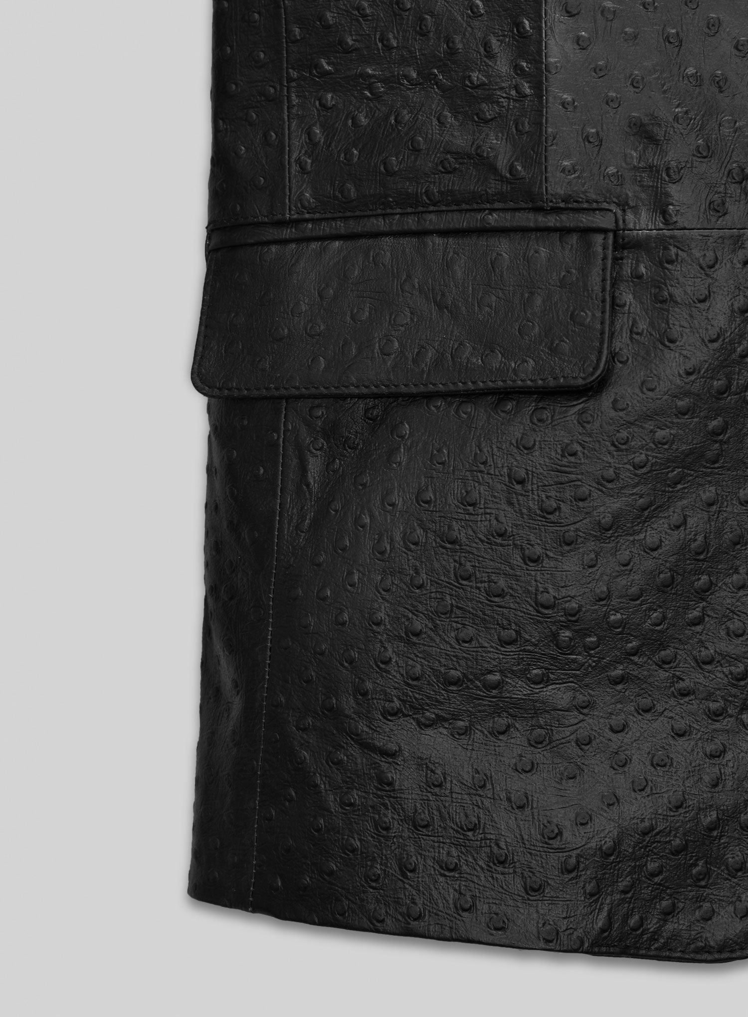 Prep up a regal solid touch with our Black Ostrich Leather Blazer to your look that has everyone’s attention and keeps you comfortable throughout the day.
