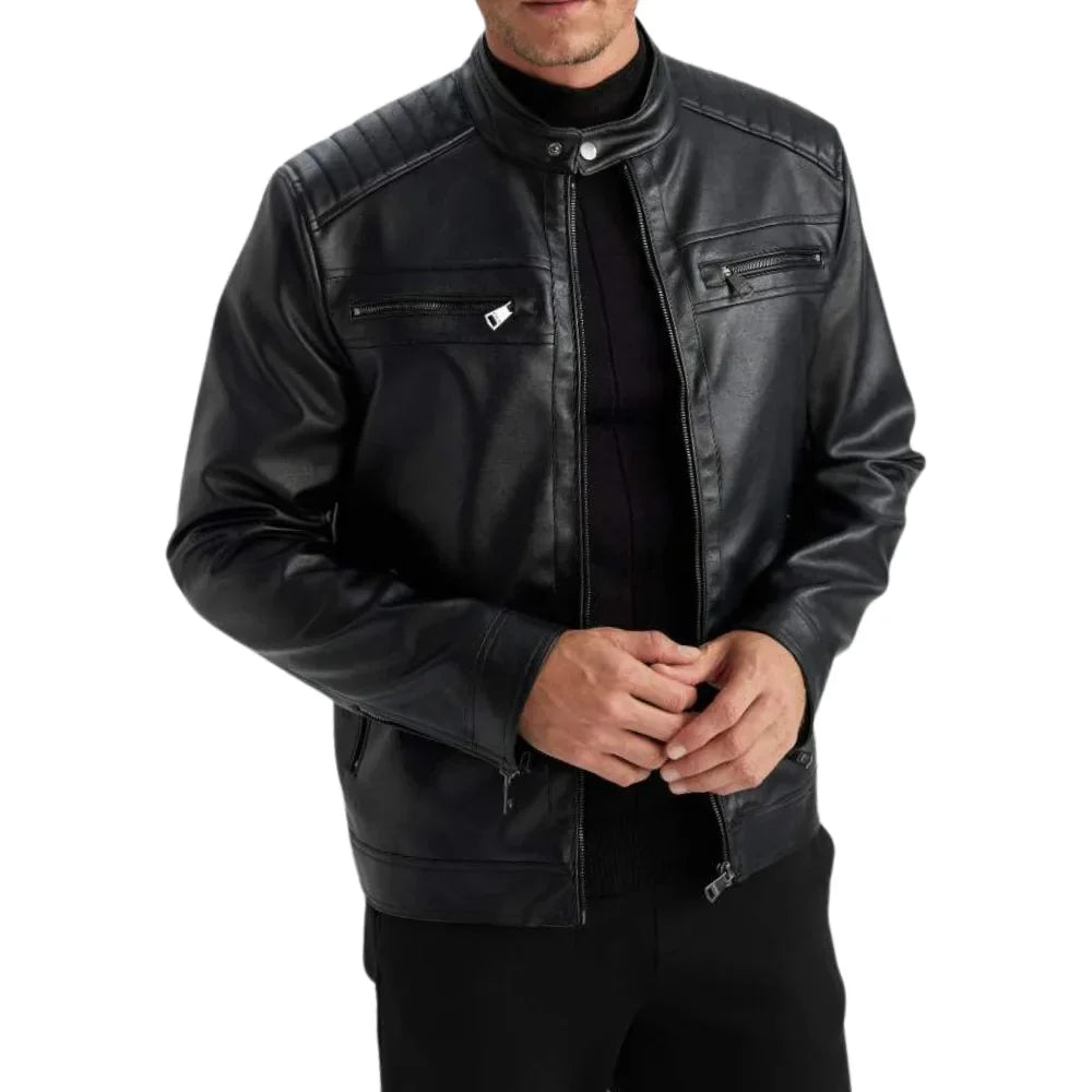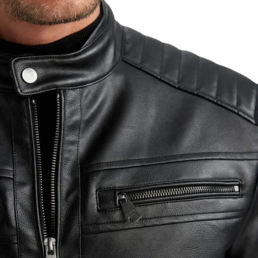 Introducing our Men’s Cafe Racer Leather Jacket with Quilted Shoulder a combination of classic design and contemporary edge. Crafted with premium lambskin leather, this jacket showcases a unique blend of ruggedness. The standout feature of this jacket is the quilted shoulder design, that sets this black cafe racer jacket apart. Made from high-quality leather it is both durable and stylish. Elevate your style and make a bold statement with our Men’s Cafe Racer jacket. A must-have for trendsetters who appreciate craftsmanship and individuality.