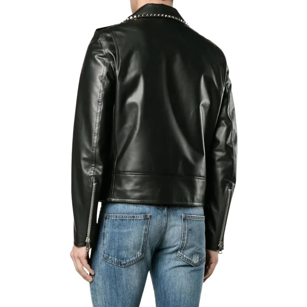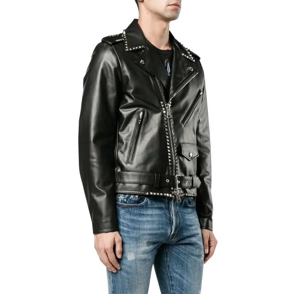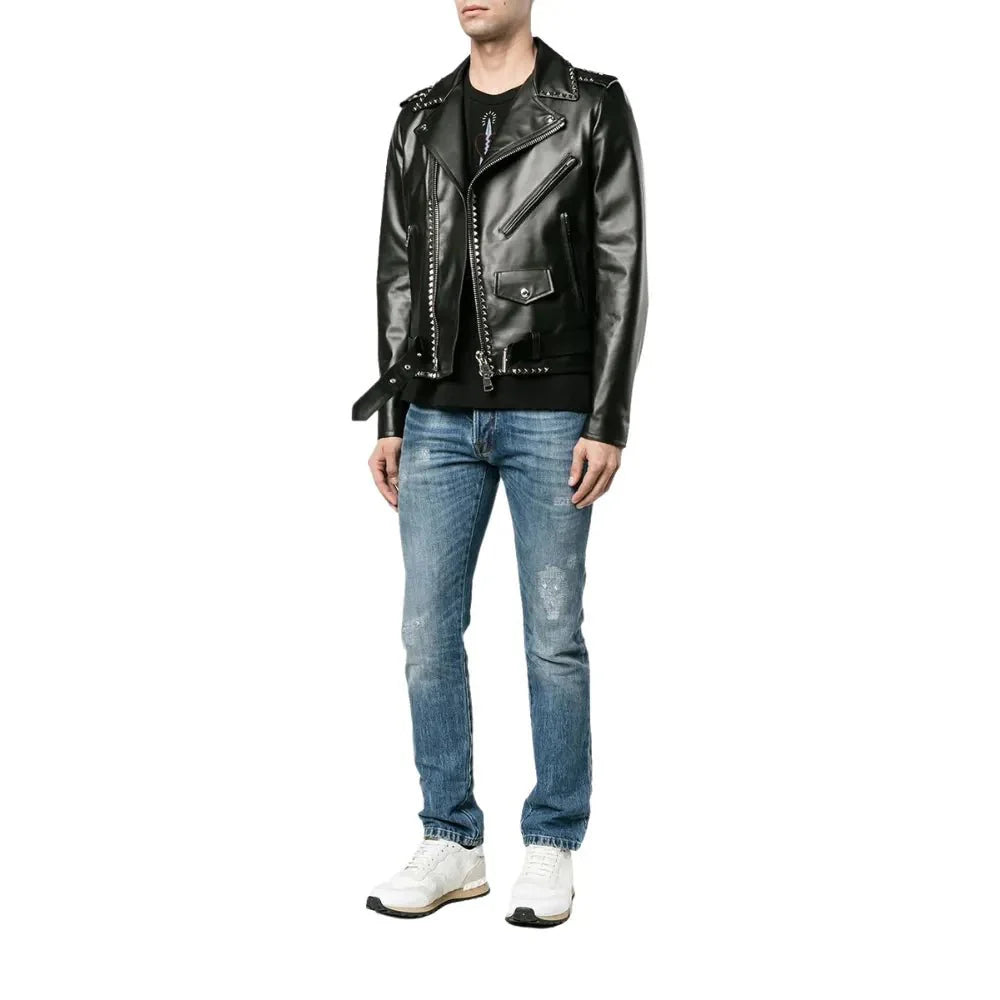 Black Biker Jacket Mens Asymmetrical Studded Leather Style