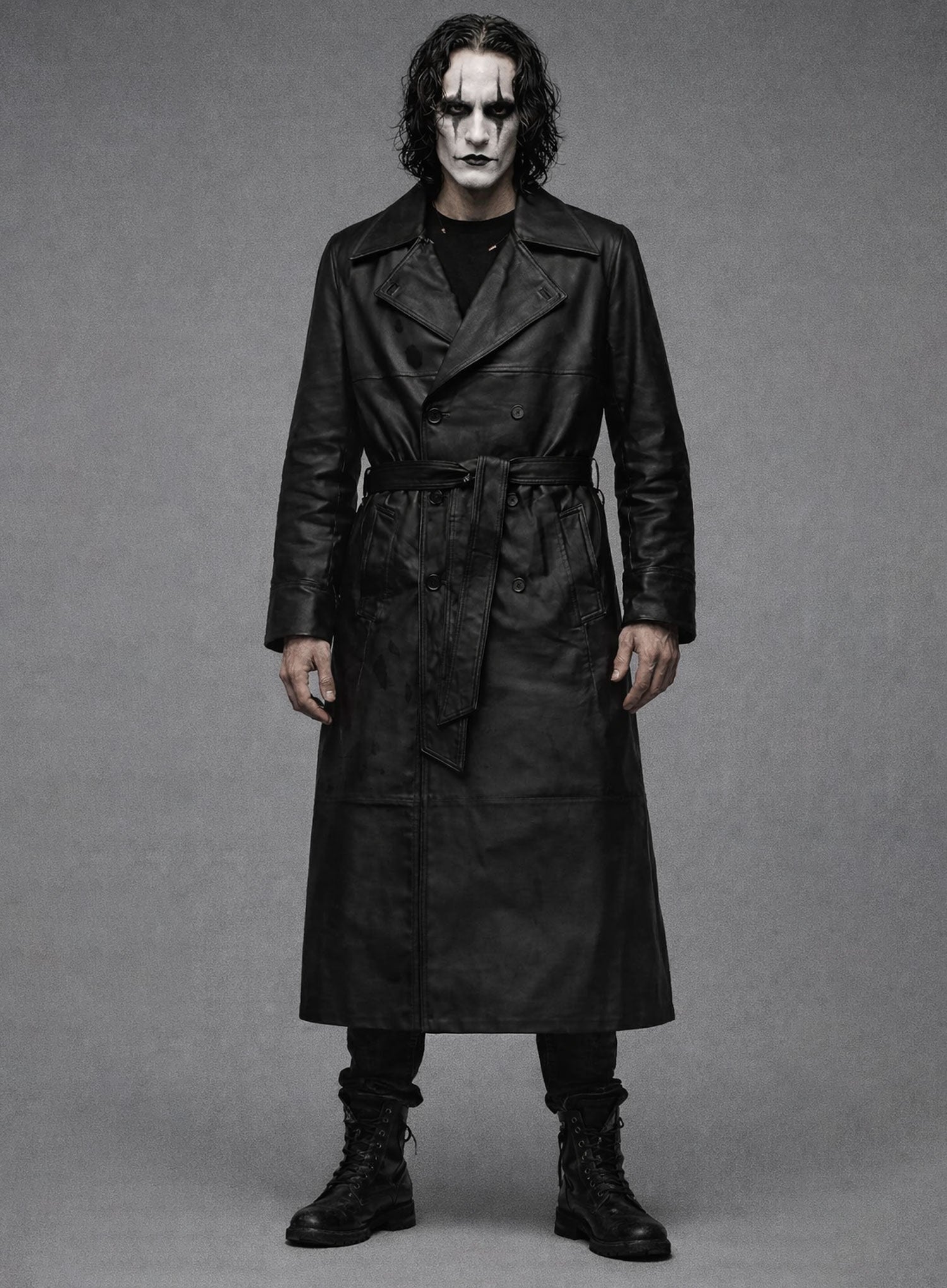 Stay warm and stylish this winter with our black leather coat, inspired by the unforgettable look from The Crow (1994). Crafted from 100% pure Napa leather, this coat combines timeless fashion with practicality for colder months. The sleek design features double-sided buttons for a stylish touch while offering full coverage to keep you cozy.