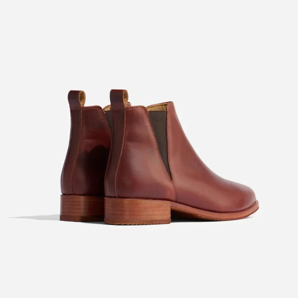 Spruce up your look with these trendy Brown Leather Chelsea Boots Women! Crafted with rich auburn brown, high-quality leather, these boots are built to last and breathable. The water resistant design and flexible rubber sole keep your feet dry and comfortable, while the memory foam insole provides all-day cushioning. Triangular elastic side panels ensure you a snug fit which makes these brown boots perfect for conquering puddles or city streets in style.