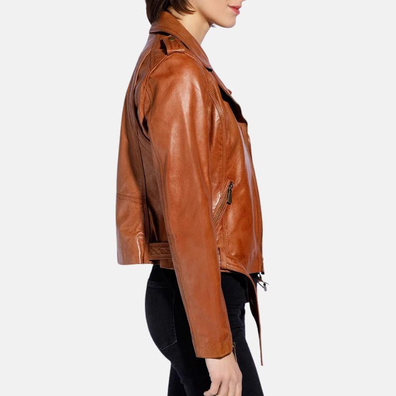 Looking for a jacket that’s both stylish and tough? This brown leather motorcycle jacket womens is the perfect pick. It’s made from 100% premium leather which is soft yet durable and keeps you comfortable on the go. The moto style gives it an edgy look with an asymmetrical zipper closure that adds a touch of coolness. It also features zipper cuffs to keep out the wind and multiple pockets to store your essentials. Adjustable straps on the shoulders and a waist belt allow for a customized fit. Whether any woman riding a motorcycle or just rocking a biker chick vibe, this womens brown jacket will turn heads.