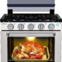 Stove Oven Combo: 2-in-1 design, with three burner stoves (8,000 BTU + 6,500* 2 BTU) and one oven (7,100 BTU). Achieve endless cooking in a compact kitchen.