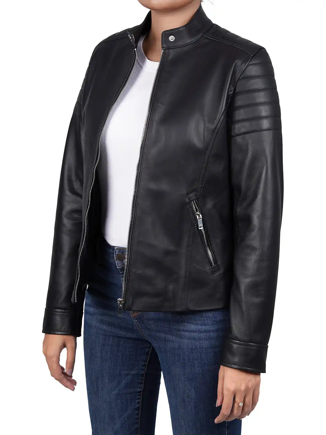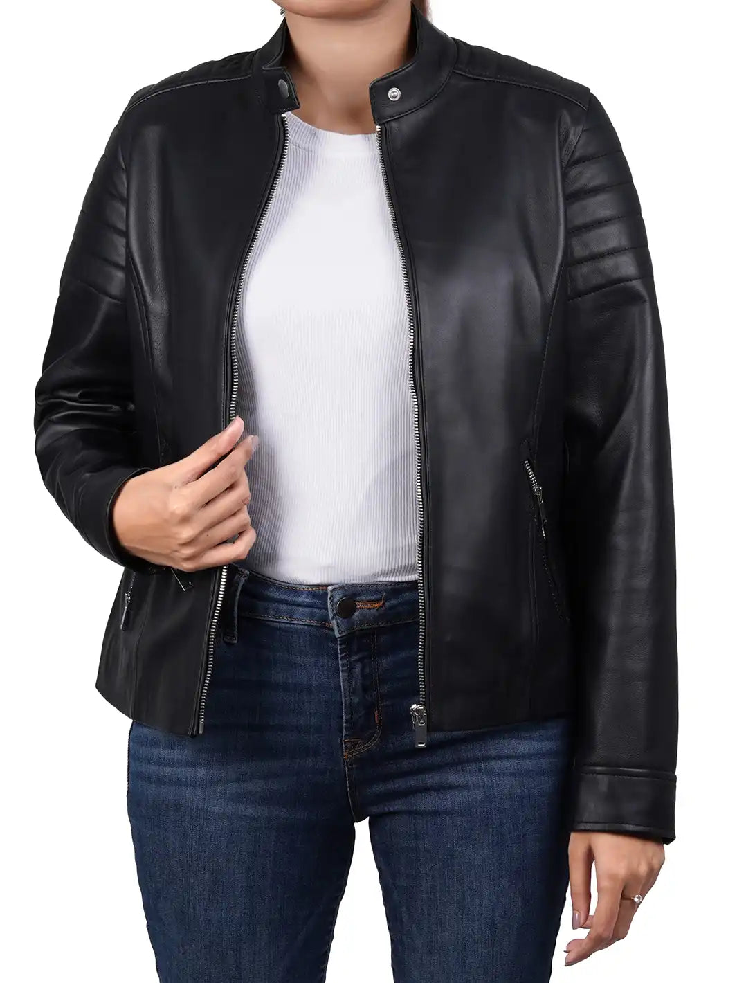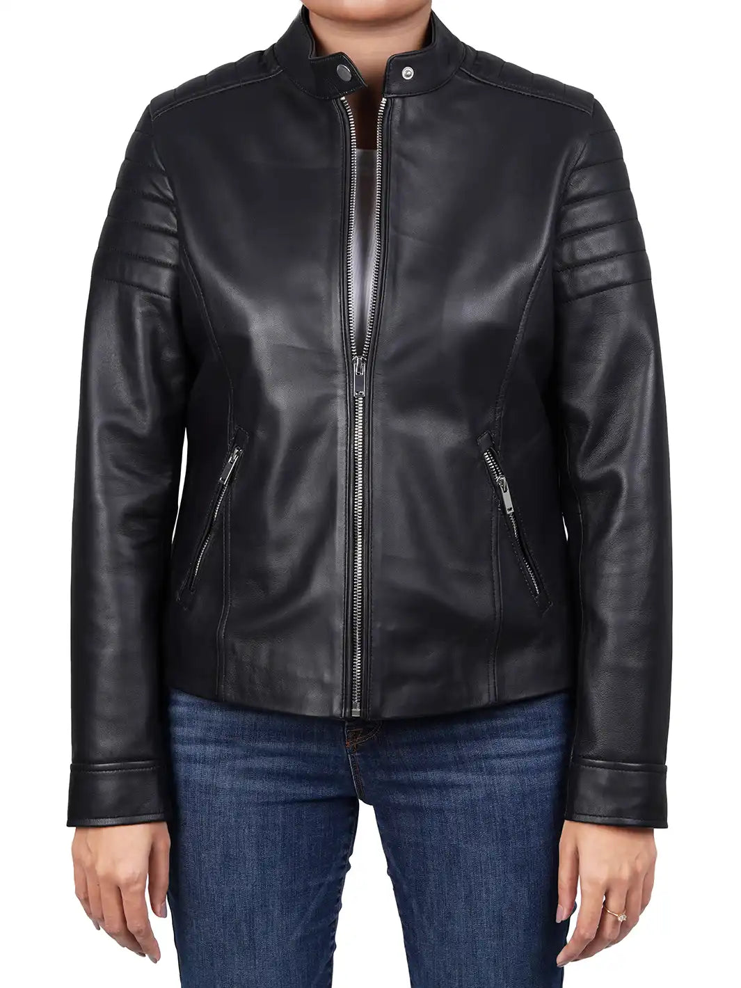 Be the first to review “Carrie Relax Fit Black Cafe Racer Leather Jacket” Cancel reply