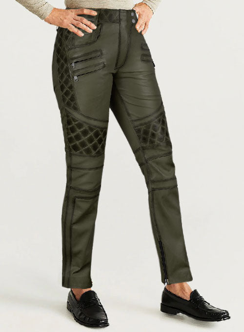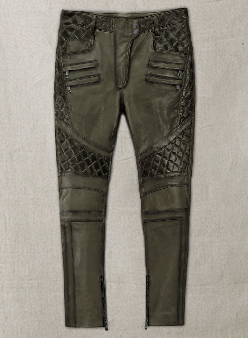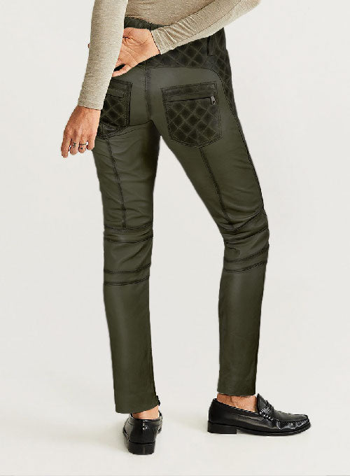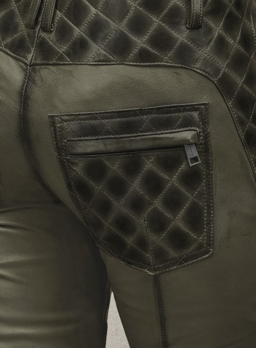 Leather pants are a part of casual attire. Update your fall and winter wardrobe with our Carrier Burnt Olive Leather Pants which feature this amazing quilting design along with zippers that help you nail your edgy, sporty look and appear chic.