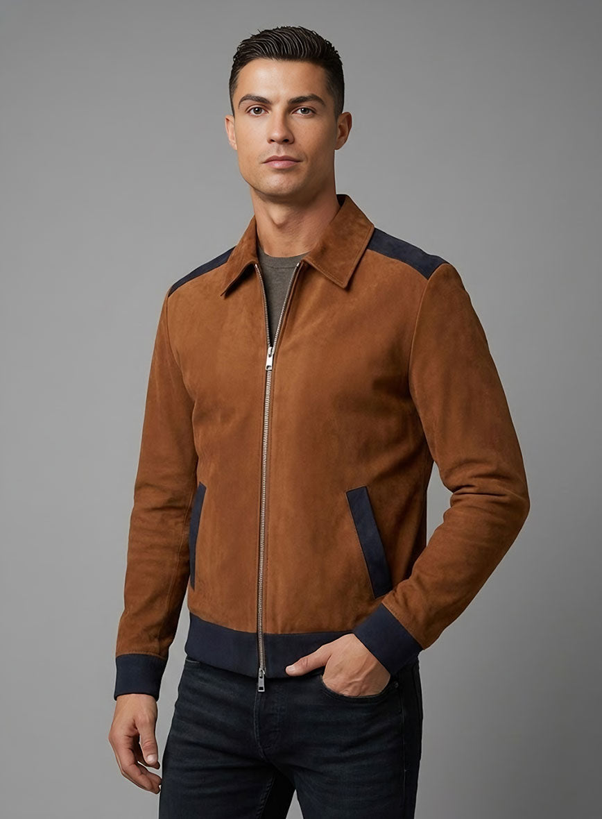 If there ever comes a time where you got to choose one outfit and spend your life in it, then it has to be our breathtaking replica suede leather jacket inspired by the world wide famous celebutante Cristiano Ronaldo, a Portuguese soccer player who captains the Portugal national team, also the one regarded as the best and greatest players of all time.