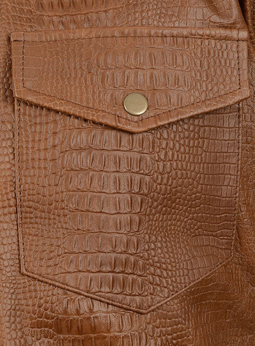Be the first to review “Crocodile Brown V Tab Leather Shirt Jacket” Cancel reply
