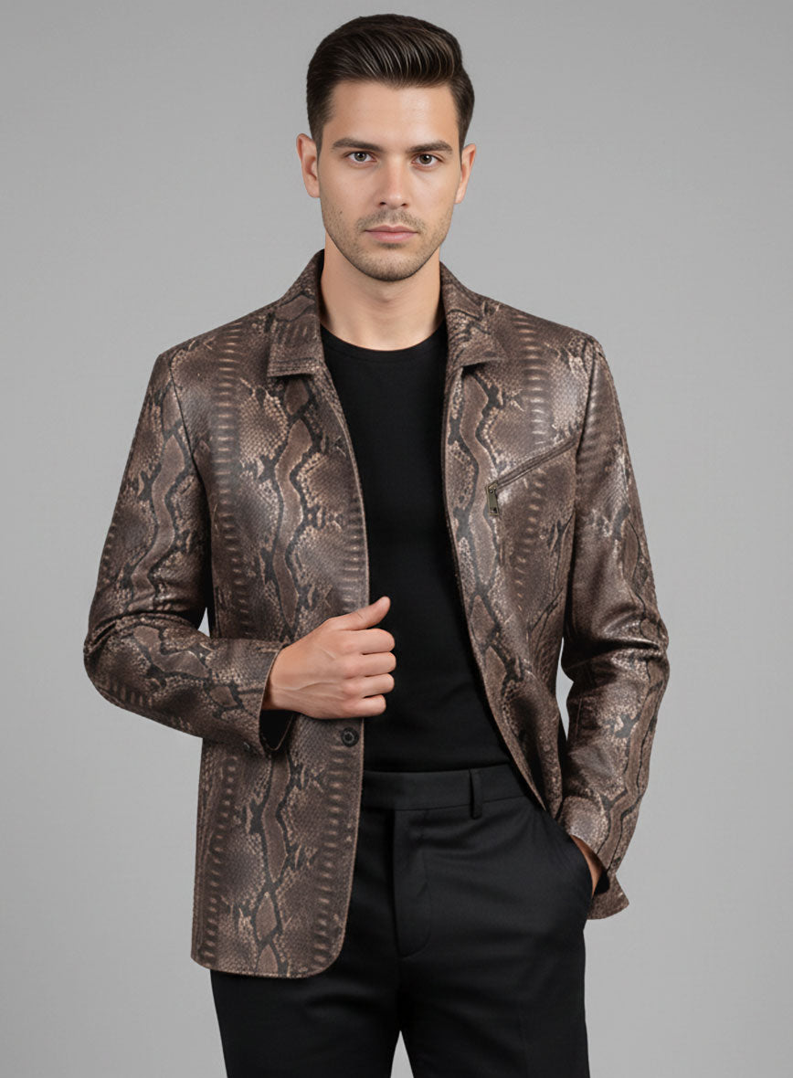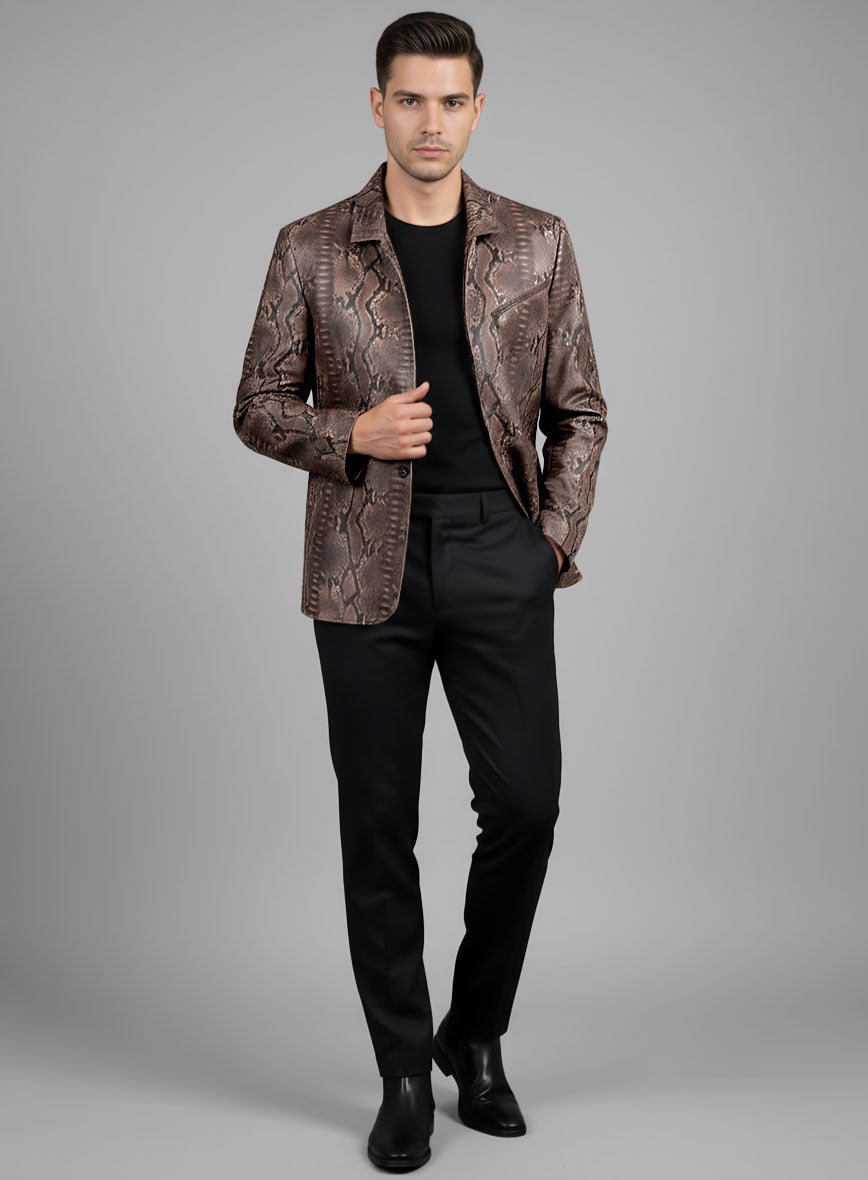 Dark Brown Python Zipper Leather Blazer #3