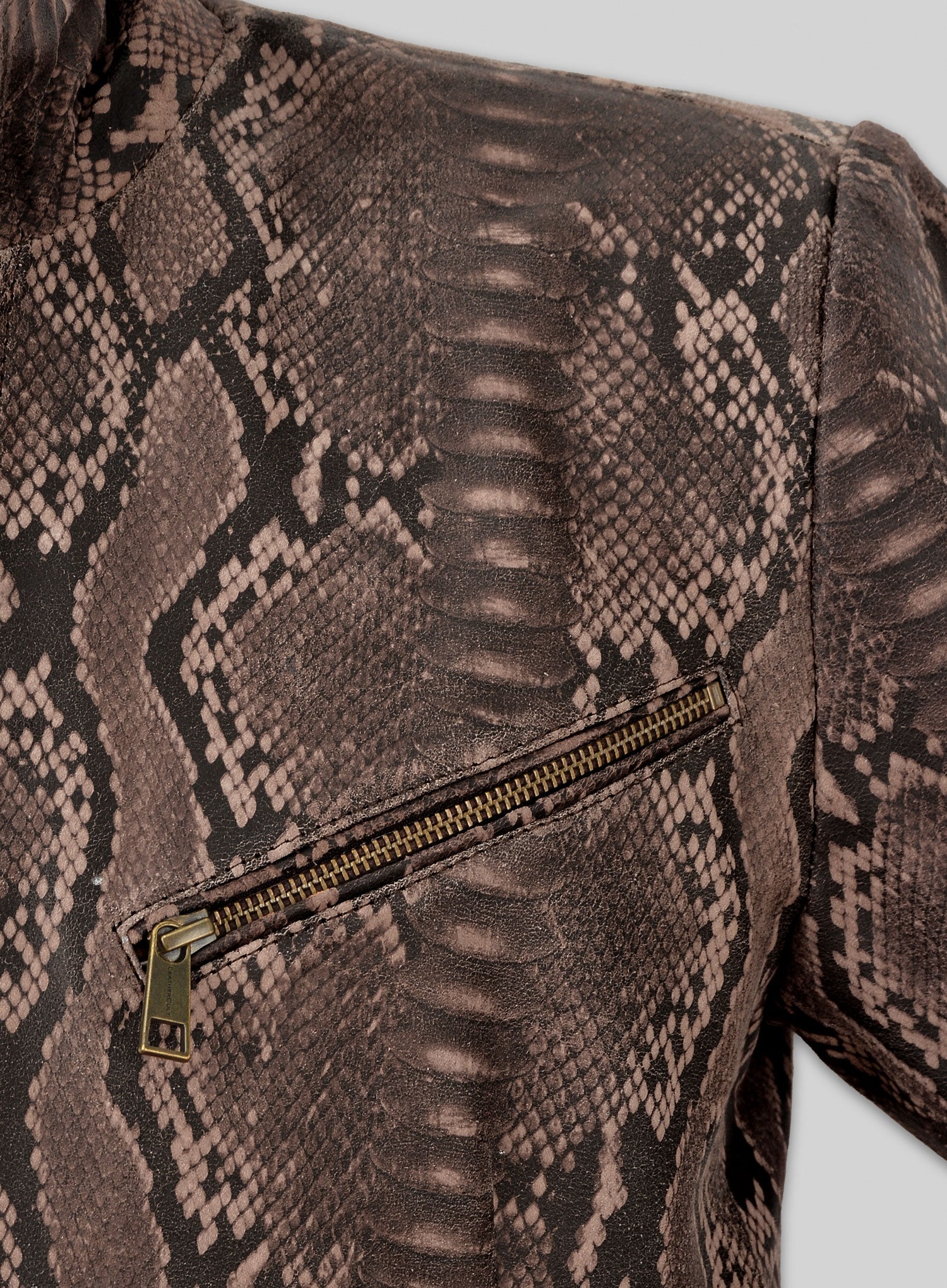 Be the first to review “Dark Brown Python Zipper Leather Blazer #3”