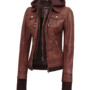 Be the first to review “Dark Brown Women’s Bomber Leather Jacket with Removable Hood” Cancel reply