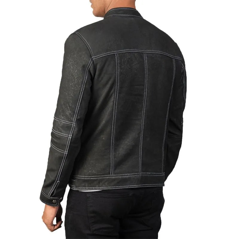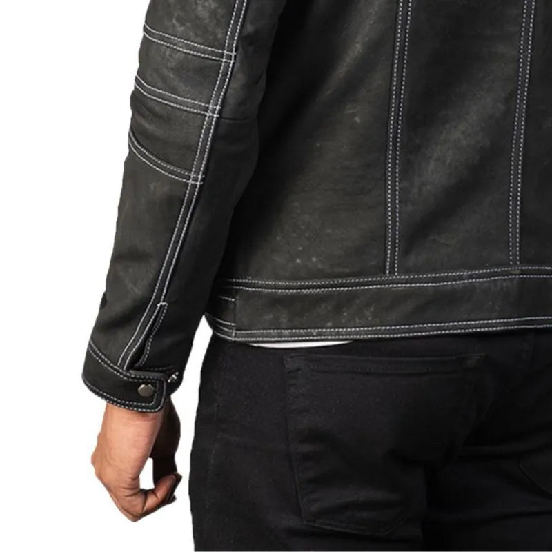 Men’s Black Biker Distressed Leather Jacket