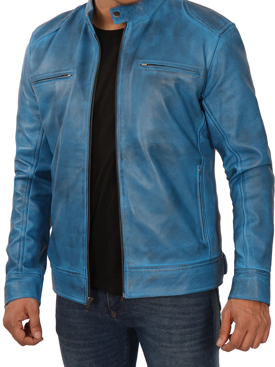 The Dodge Men’s Cafe Racer Blue Leather Jacket – is a bold and distinctive piece of outerwear that encapsulates the spirit of adventure and style. Crafted to stand out from the crowd, this jacket combines classic design elements with a contemporary twist, making it a true fashion statement.