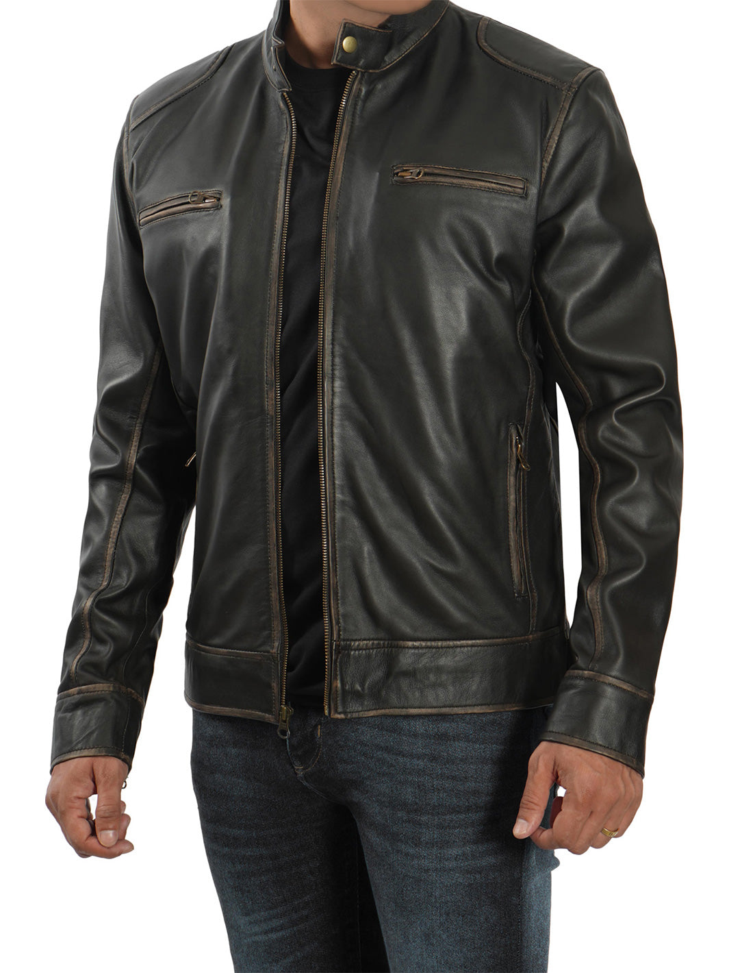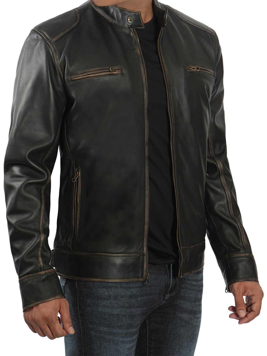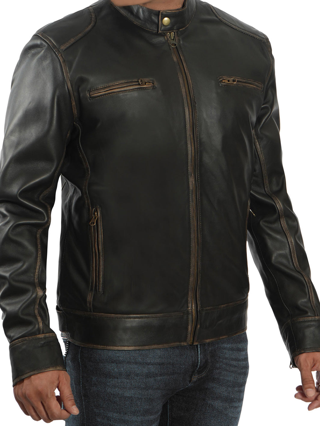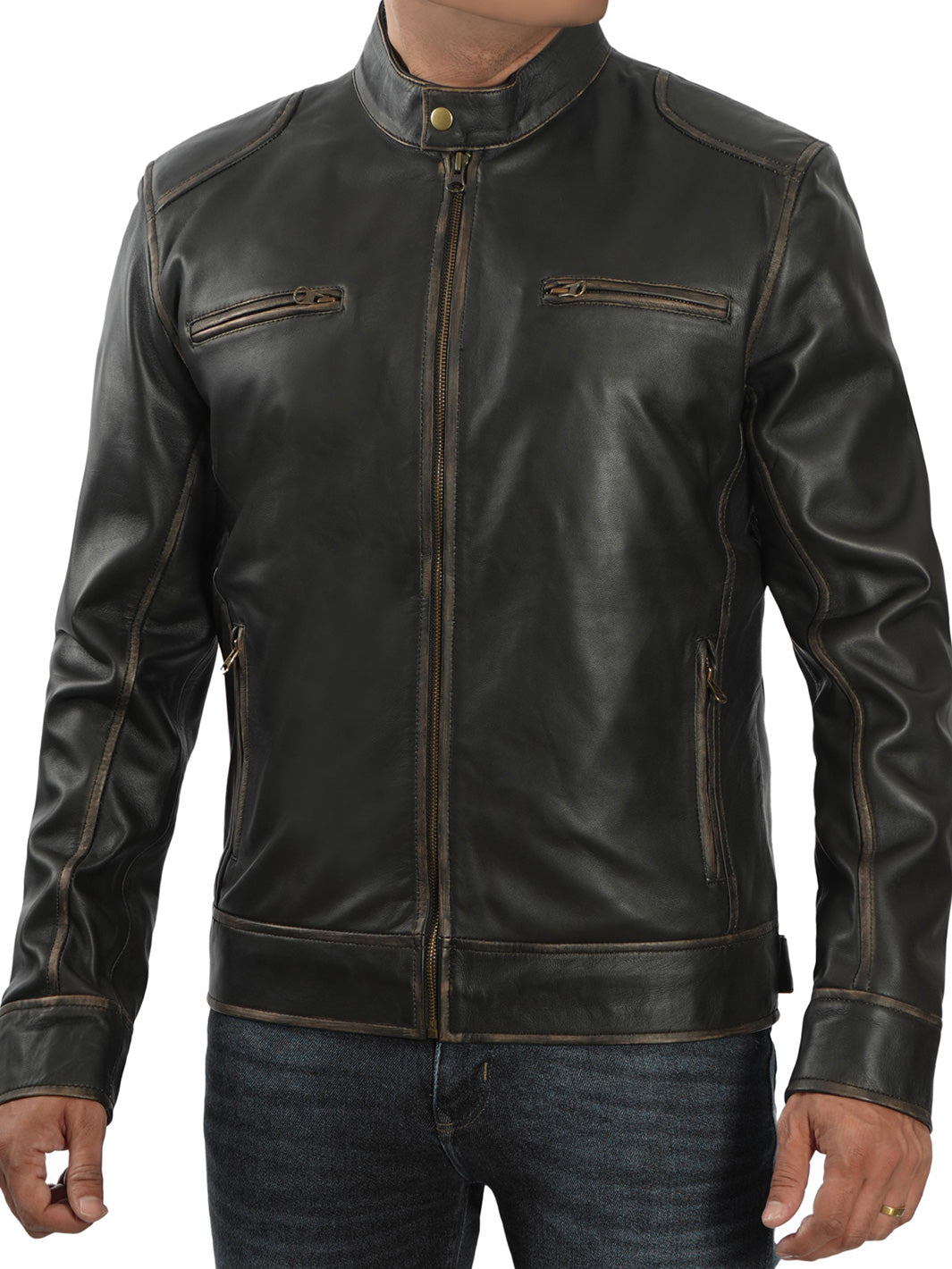 Rev up your style with our Tall Men’s Dark Brown Rub-off Cafe Racer Leather Jacket. This unique jacket combines rugged elegance with a vintage look, perfect for those who love the open road and cafe racer culture.