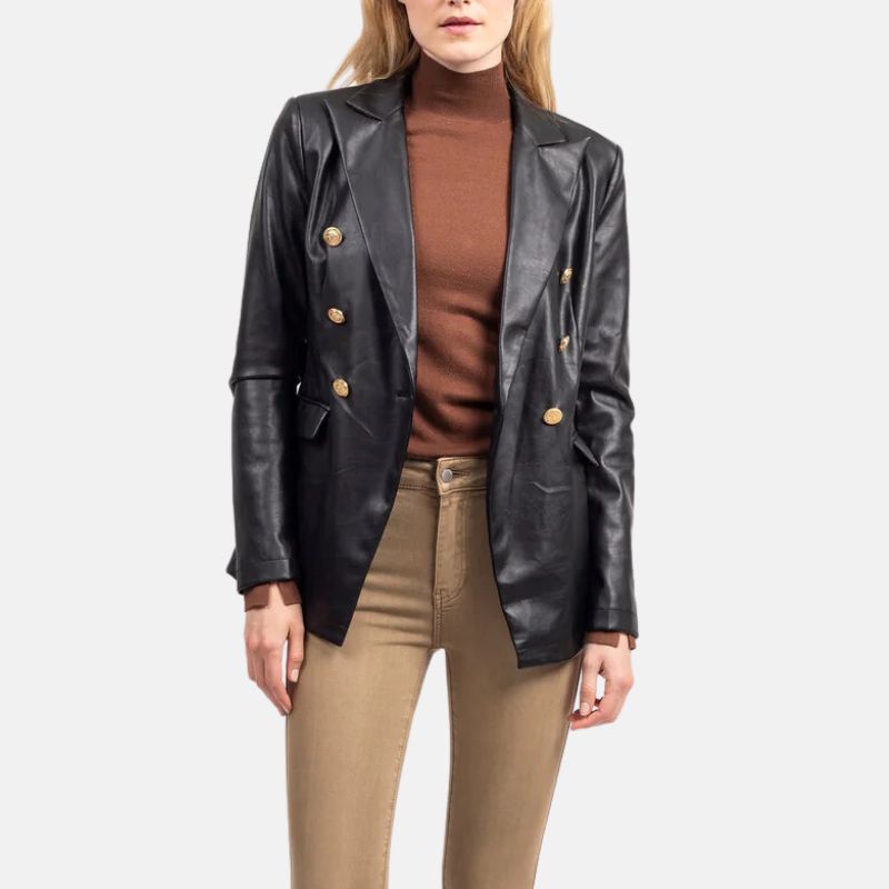 Be the first to review “Women’s Black Double Breasted Leather Coat” Cancel reply