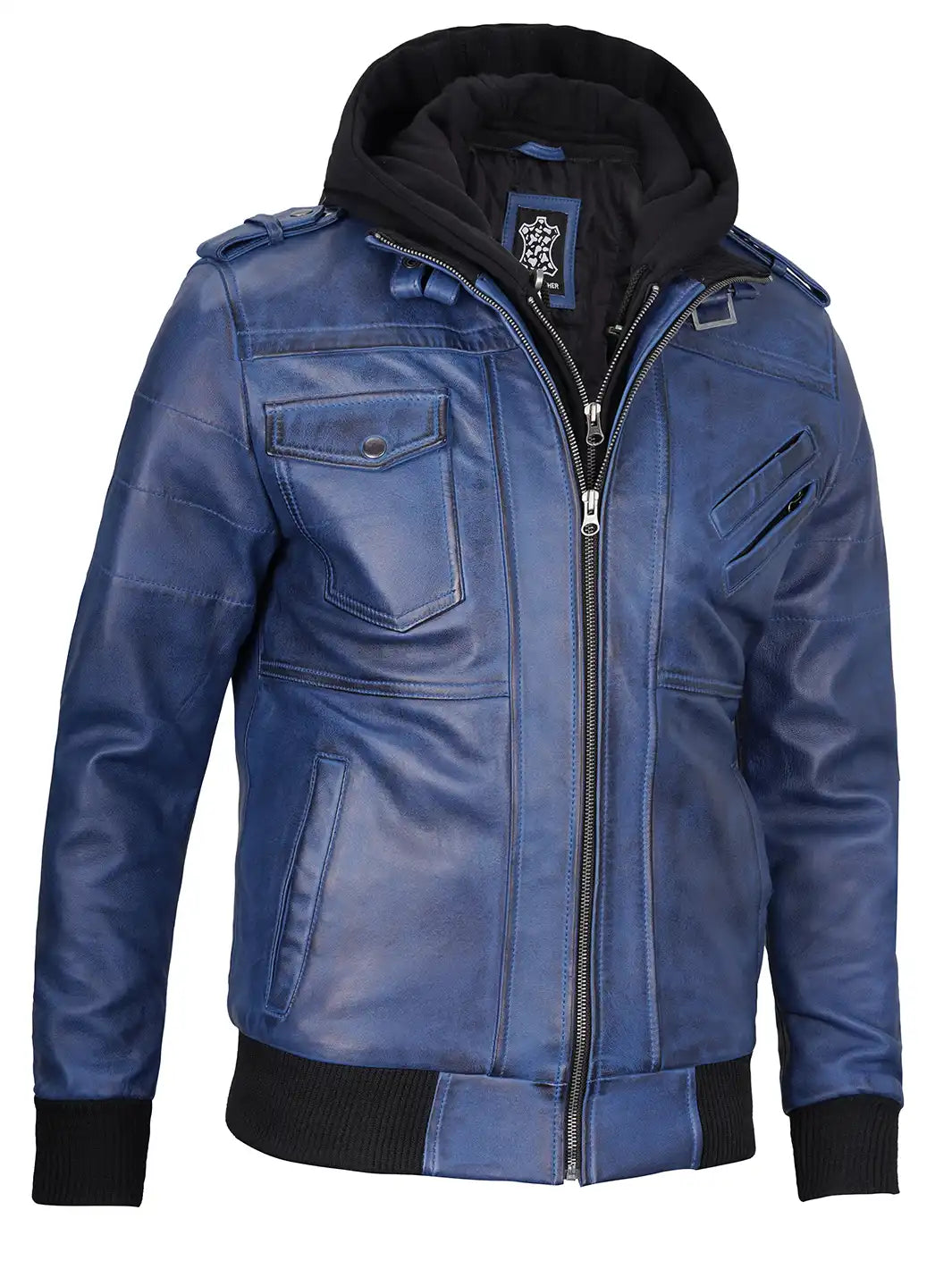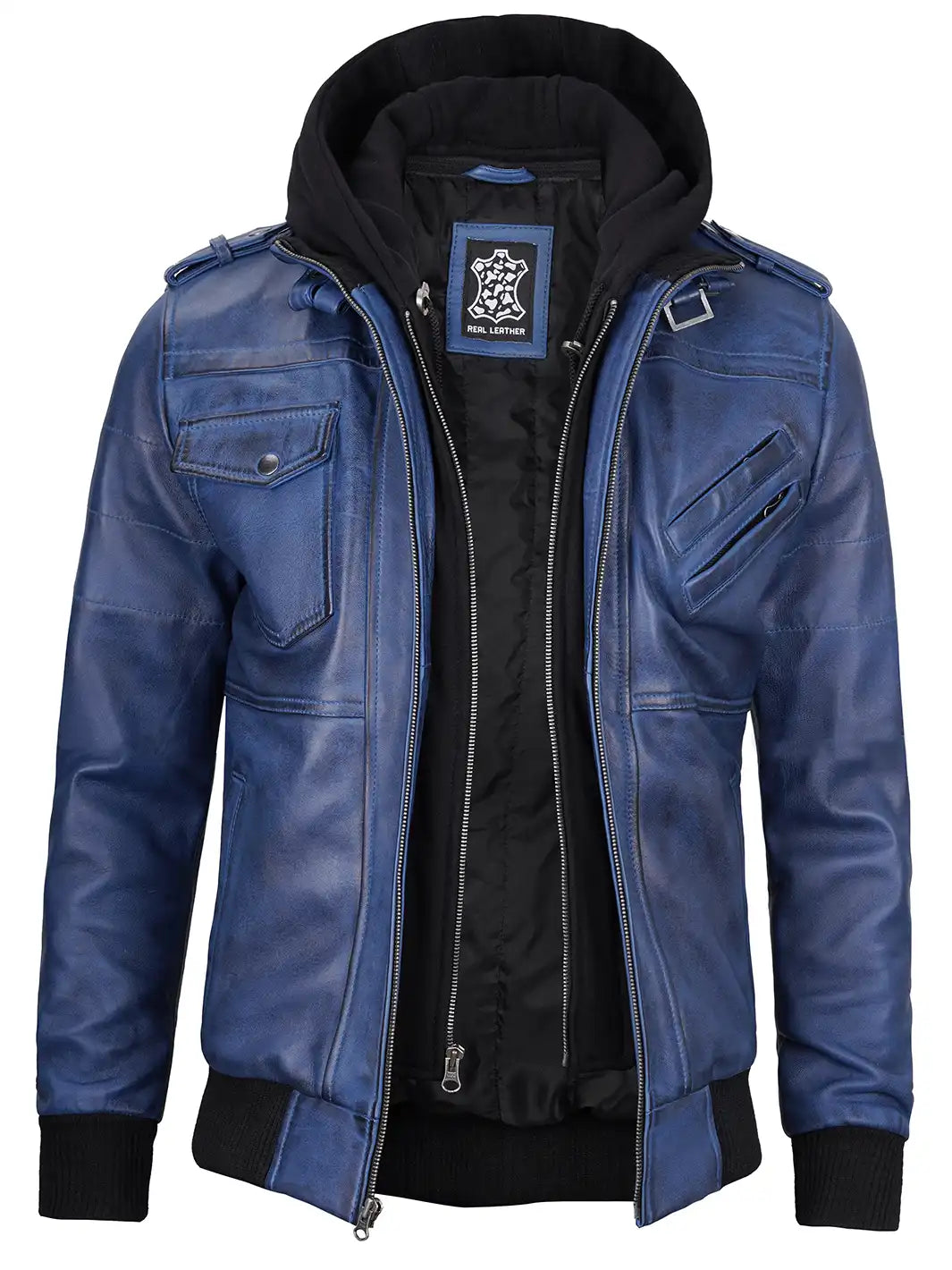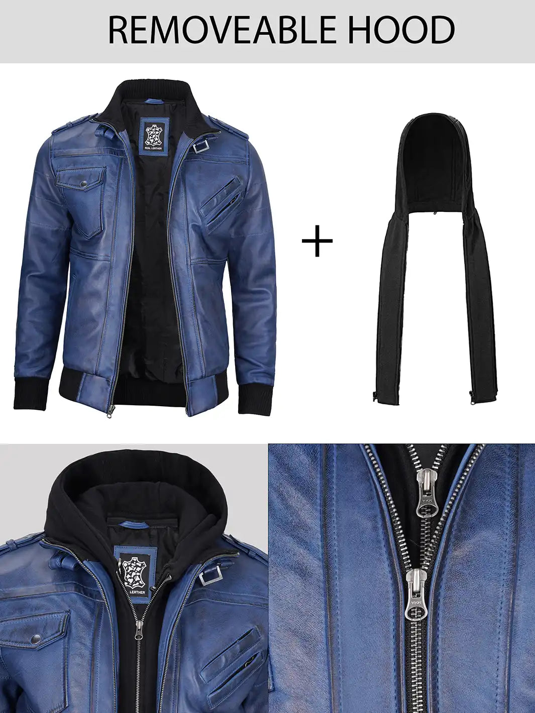 Be the first to review “Edinburgh Mens Blue Wax Leather Jacket With Hood” Cancel reply