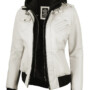 Edinburgh Off White Hooded Leather Bomber Jacket