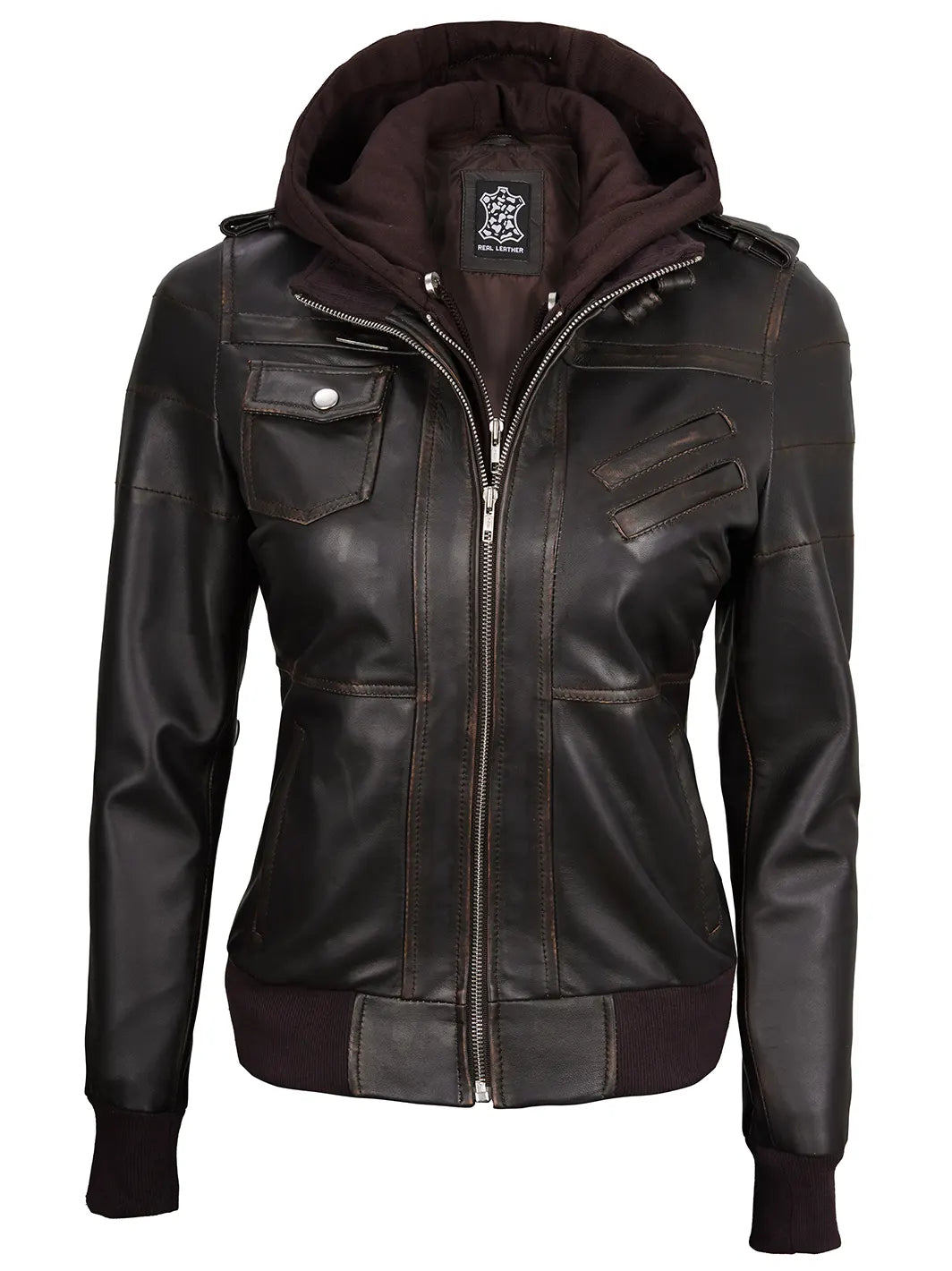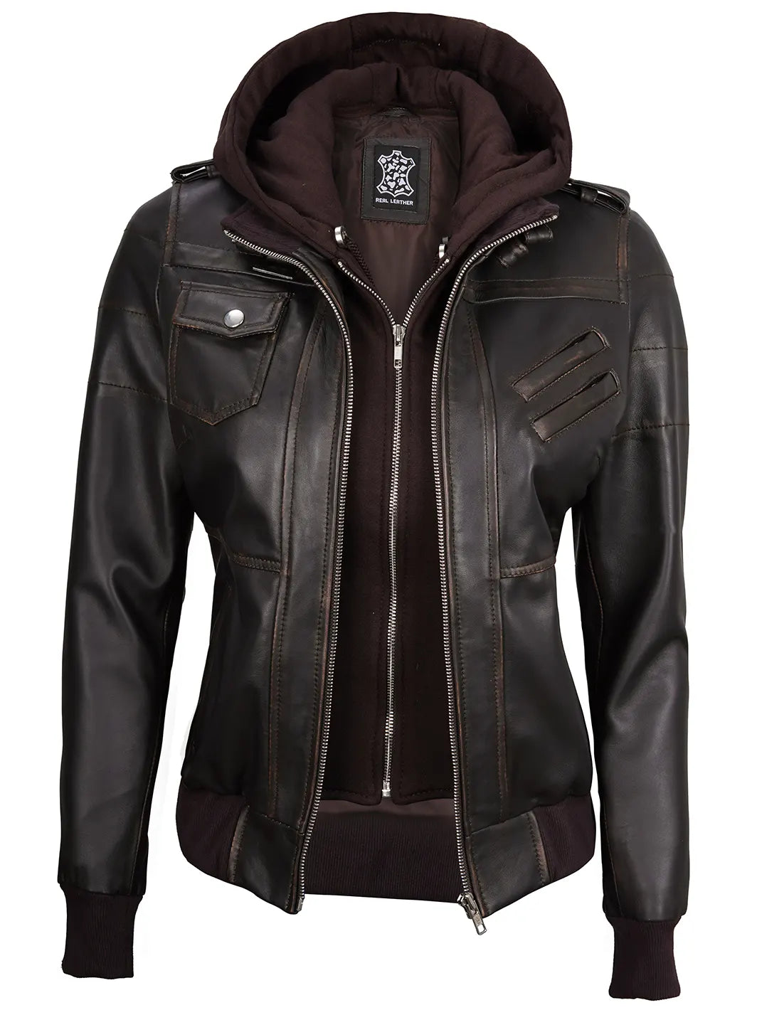 Be the first to review “Edinburgh Rub Off Brown Leather Bomber Jacket With Removable Hood” Cancel reply
