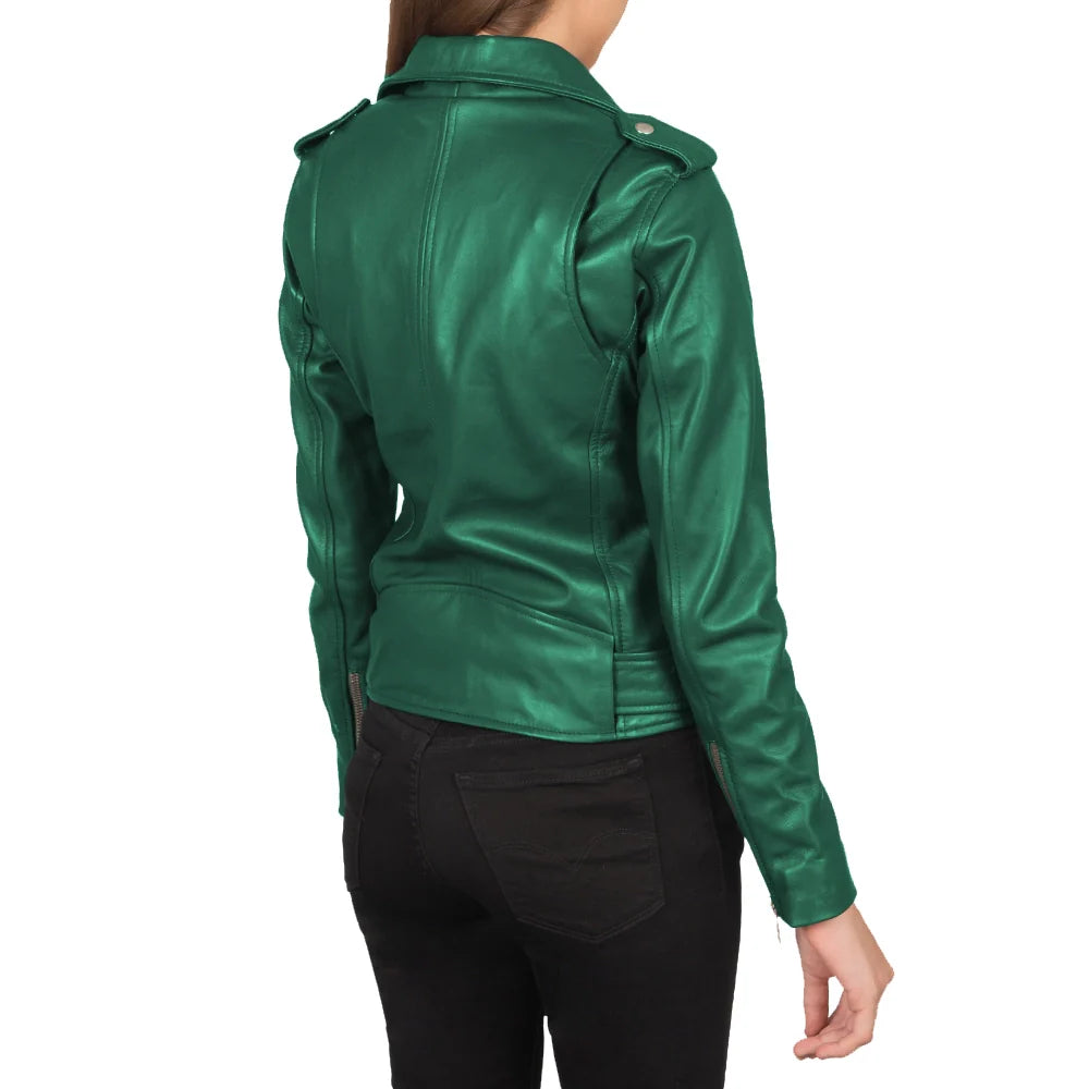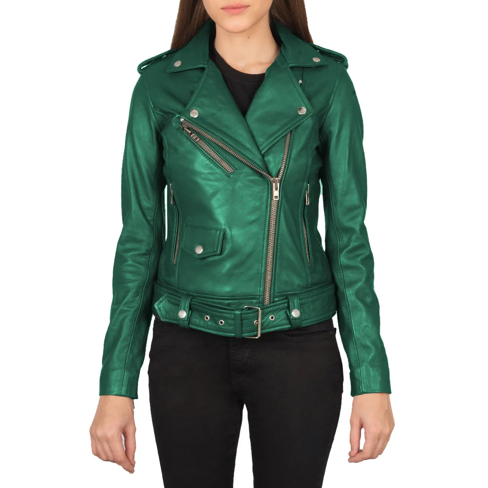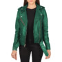 Be the first to review “Women’s Lapel Collar Emerald Green Leather Motorcycle Jacket” Cancel reply