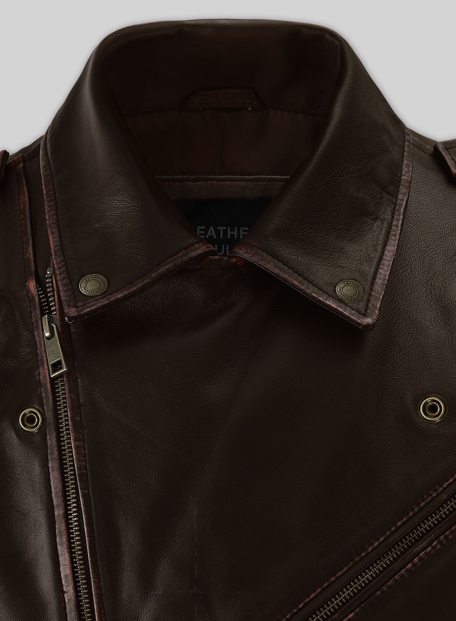 Fuel your inner outlaw with the Enforcer Dark Brown Biker Leather Jacket—a high-octane blend of grit and precision. Built from deep, burnished brown leather with distressed detailing and bold topstitch highlights, this piece captures that raw-road aesthetic. The asymmetrical zip, classic wide lapels, shoulder epaulets, and functional belt cinch the attitude in place. This jacket doesn’t whisper rebellion—it roars it.