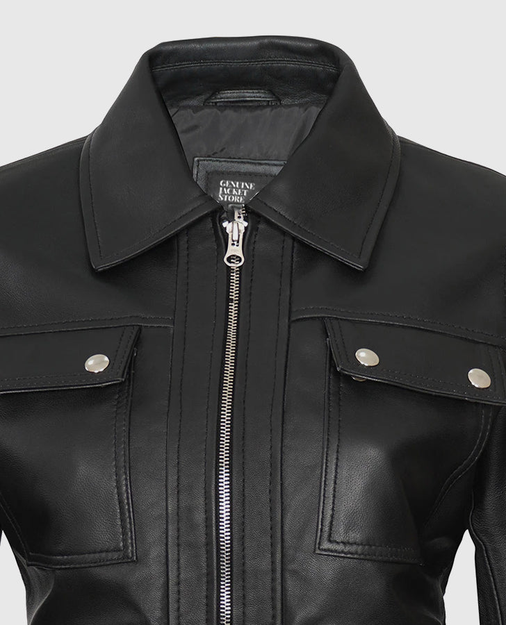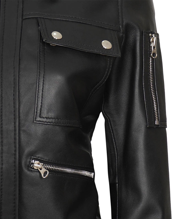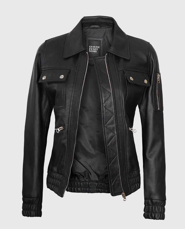 Be the first to review “Evelyn Women’s Classic Black Leather Bomber Jacket” Cancel reply