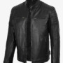 Add bold edge to your wardrobe with the Felix men’s black cafe racer leather jacket. Crafted from 100% real lambskin, it features padded shoulders and sleeves, snap-button collar, and side waist straps for a tailored fit, complete with multiple pockets for all-day comfort.