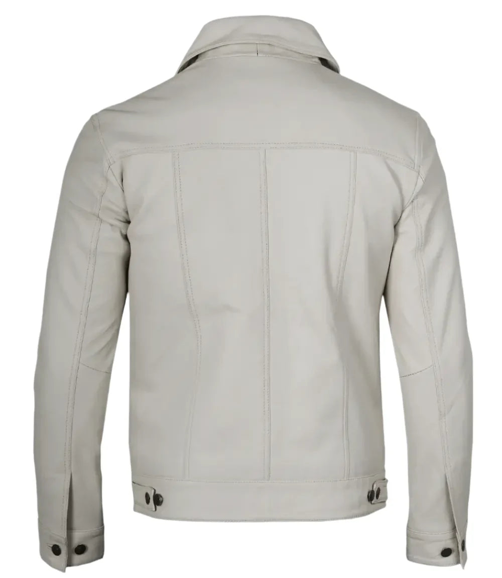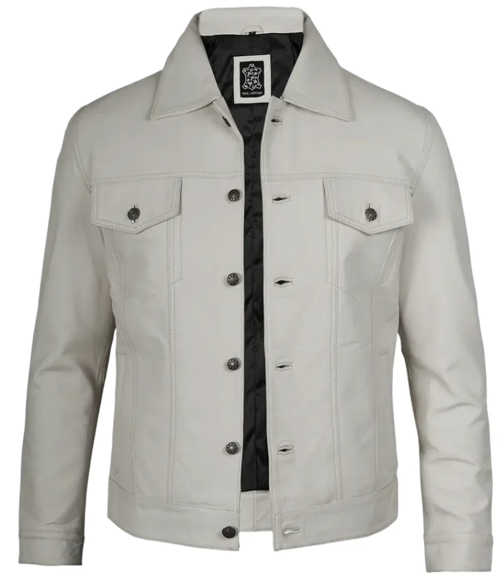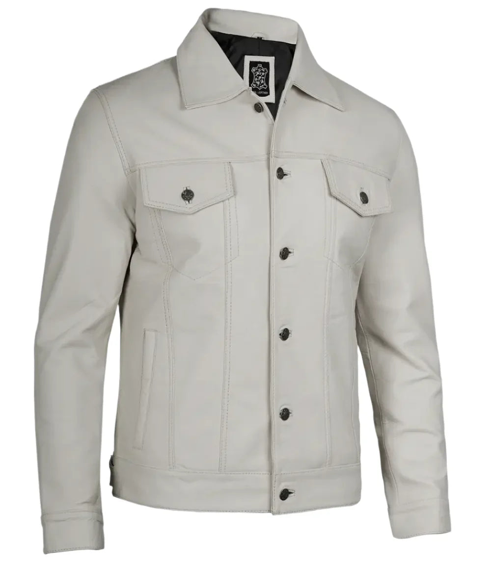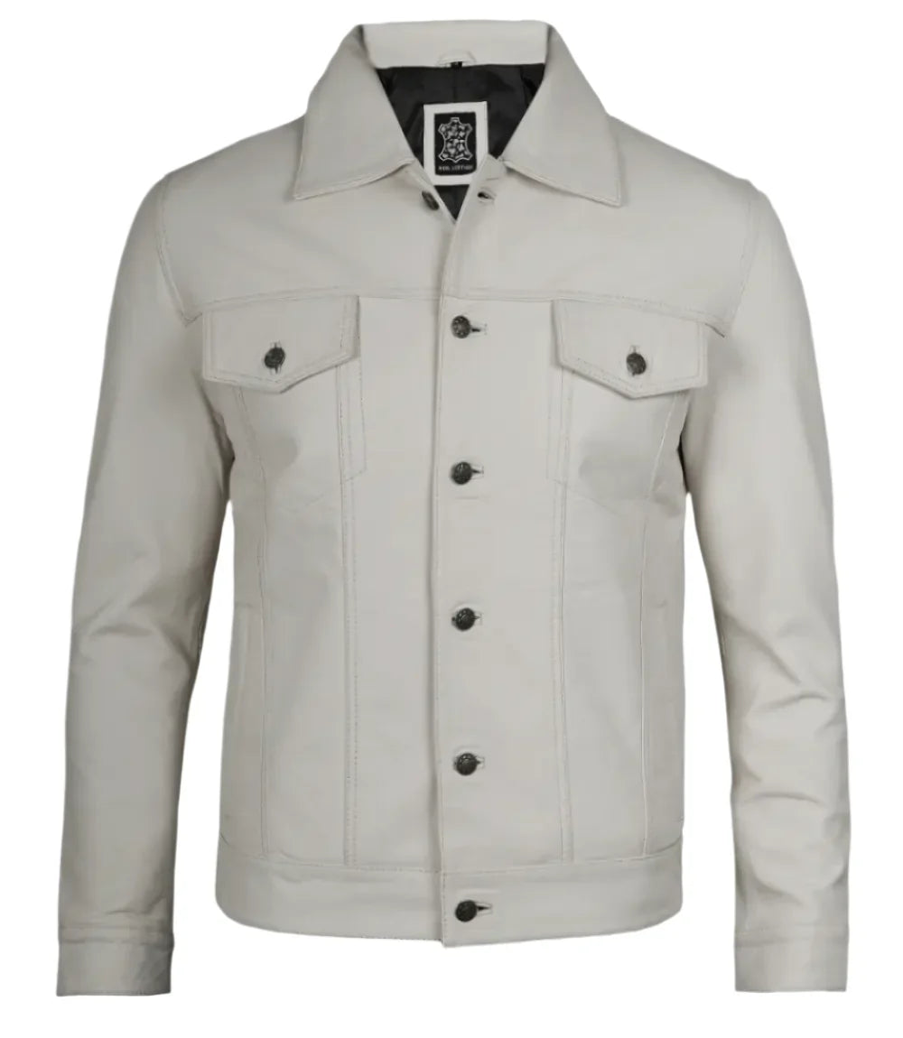 Introducing the Fernando Men’s White Leather Trucker Jacket – a bold fusion of classic design and contemporary edge. This exceptional piece of outerwear is meticulously crafted to provide both style and functionality, making it a must-have addition to your wardrobe.