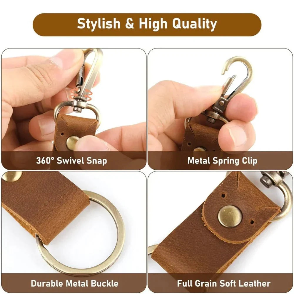 Crafted from soft top-grain leather, this keychain offers durability and elegance with clean stitching. The compact design and 360° rotating clip allow for easy key access, fitting conveniently in your pocket, purse, or bag. Ideal for car, home, and office keys, it makes a perfect practical gift for any occasion.