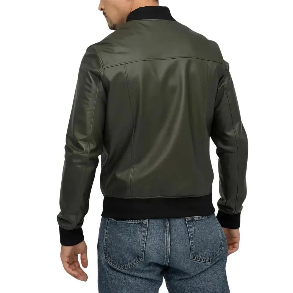 Be the first to review “Men’s Olive Green Leather Bomber Jacket” Cancel reply