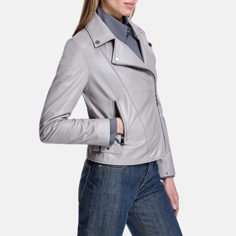 Be the first to review “Grey Leather Womens Biker Jacket” Cancel reply