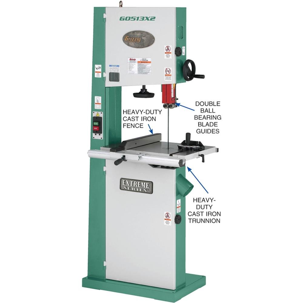 The 2 HP motor powers through hardwoods with a 12-1/8″ cutting height and 16-1/4″ throat provide ample cutting capacity for most applications. For a full range replacement and resaw blades for your G0513X2, .