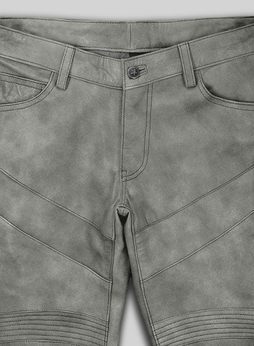 A modern twist on a tried-and-tested classic, the gray leather biker jeans crafted from genuine soft pure napa leather will be a wardrobe favourite for years to come.Wear them with a black tshirt and black boots for effortless off-duty cool style.