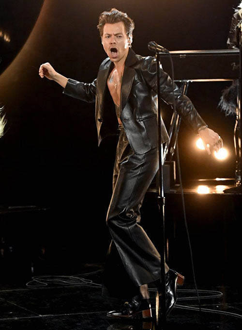 Offer a fantastic and luxurious touch with our singer-songwriter Harry Styles-inspired replica leather jacket and pants set, worn during a performance at the Grammy Awards 2021.
