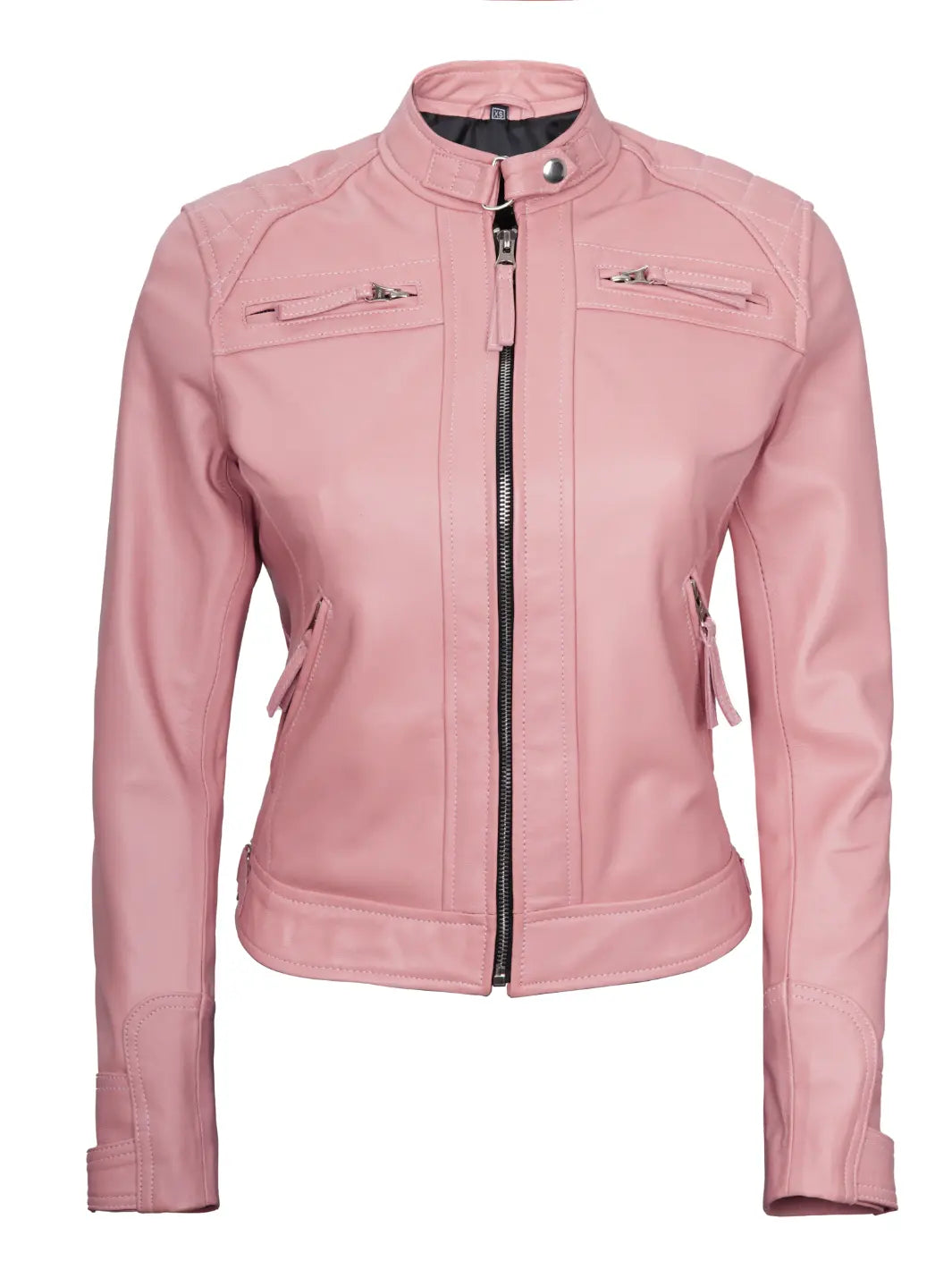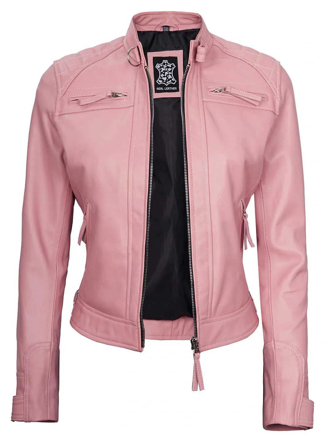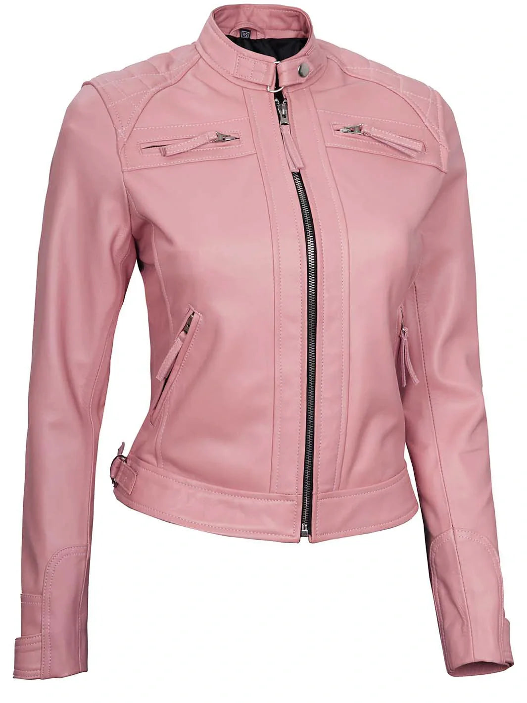 Be the first to review “Johnson Women Pink Quilted Cafe Racer Leather Jacket” Cancel reply