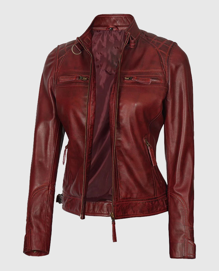 Be the first to review “Johnson Women’s Brown Quilted Cafe Racer Genuine Leather Jacket” Cancel reply