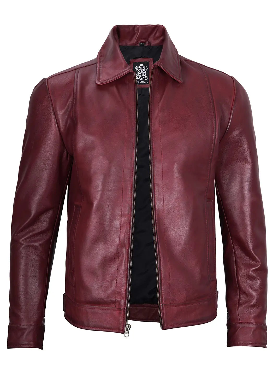 Be the first to review “Jose Maroon Leather Biker Jacket”