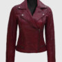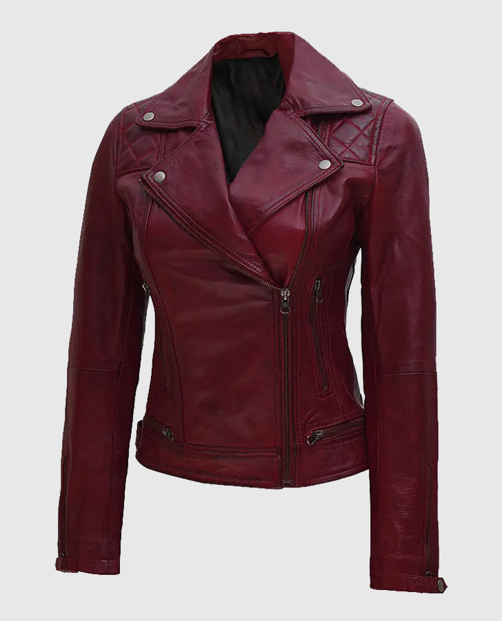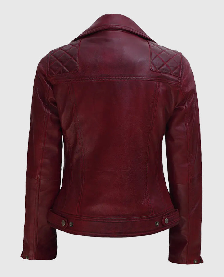 Kimberley Quilted Leather Motorcycle Maroon Jacket for Women