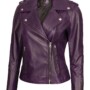 Kirsten Women’s Asymmetrical Cafe Racer Purple Leather Jacket