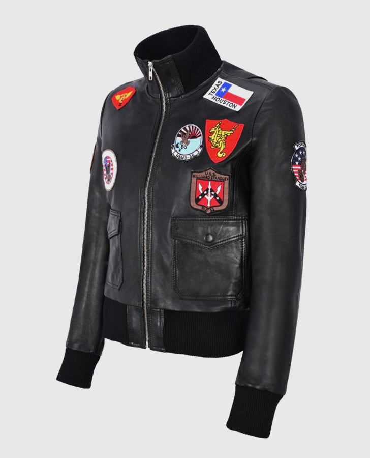 Be the first to review “Women’s Top Gun Black Bomber Jacket With Badges” Cancel reply