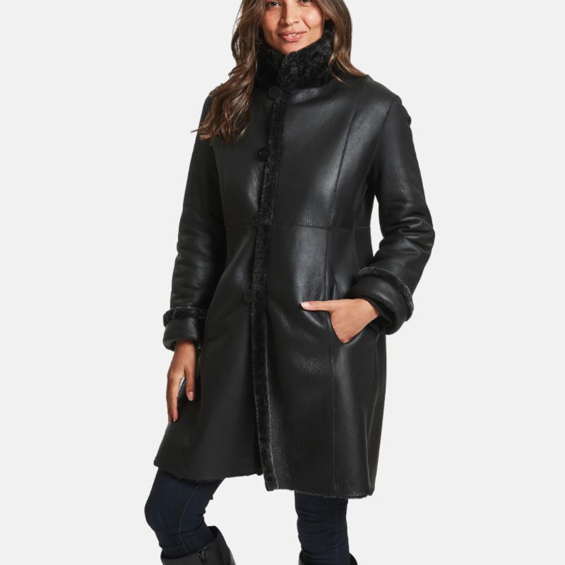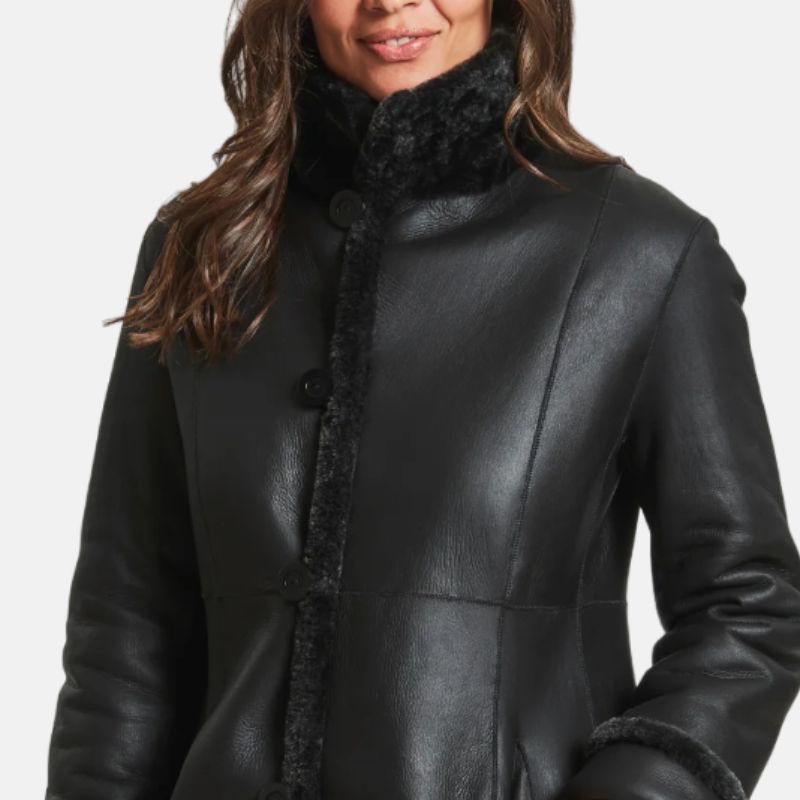 Discover warmth and style in our Women’s Leather Shearling Long Black Coat at trendyjacket.com. Crafted with precision, this coat is more than winter wear; it’s a versatile statement for any occasion. Luxurious black leather meets plush shearling for durability and a touch of elegance. The flattering long length adds, making it a go-to choice whether you’re dressing up for an event or embracing casual chic. The attention to detail shines through in the luxurious shearling collar, framing your face with elegance. Stay snug with the front closure, ensuring you’re stylishly shielded from the winter chill. At trendyjacket.com, we understand the importance of enduring style. Shop now for our Leather Shearling Long Black Coat – the perfect fusion of fashion, warmth, and timeless elegance.