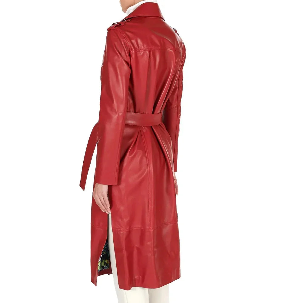 Be the first to review “Womens Double Breasted Red Long Leather Coat” Cancel reply