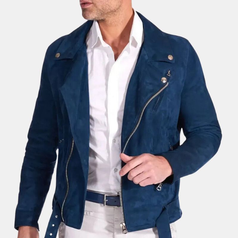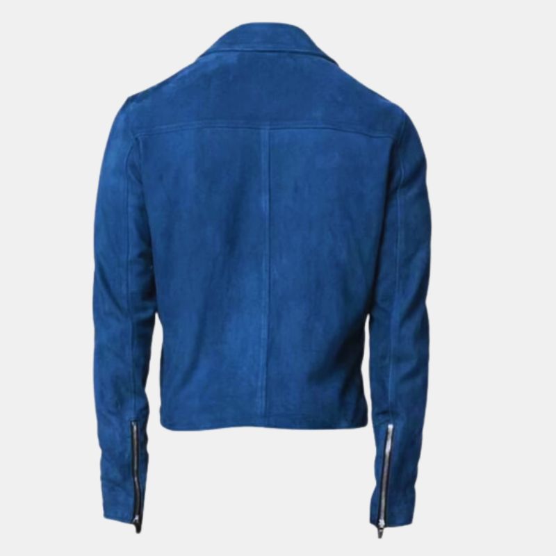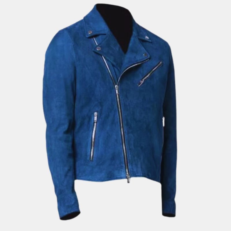Ride in style with our Men’s Biker Blue Suede Jacket from trendyjacket.com. This sleek blue suede piece is more than an outfit—it’s your statement of rugged cool and individuality. Elevate your look with comfort and confidence.