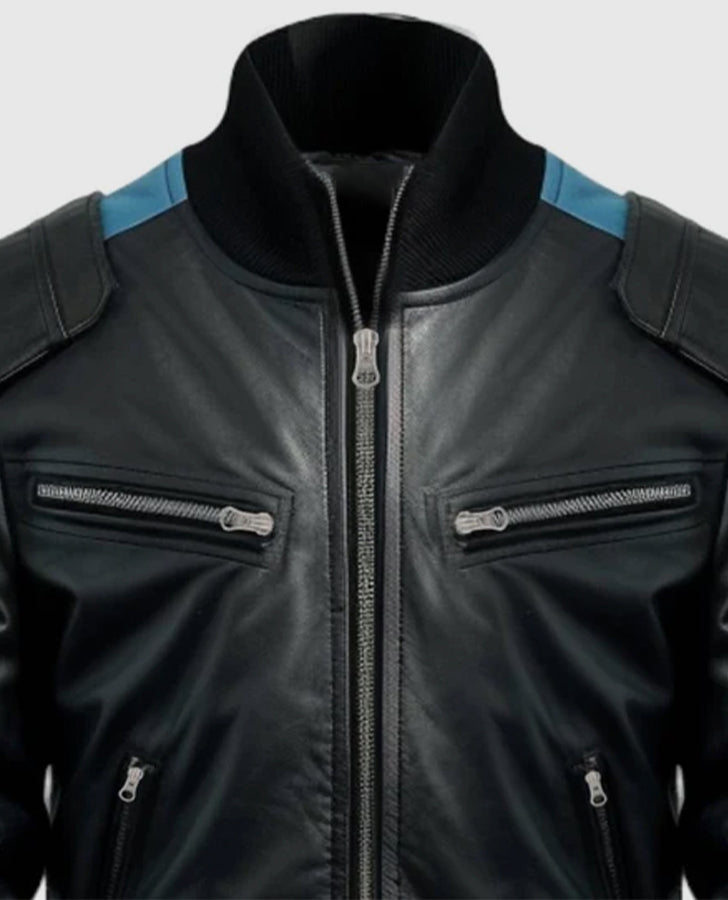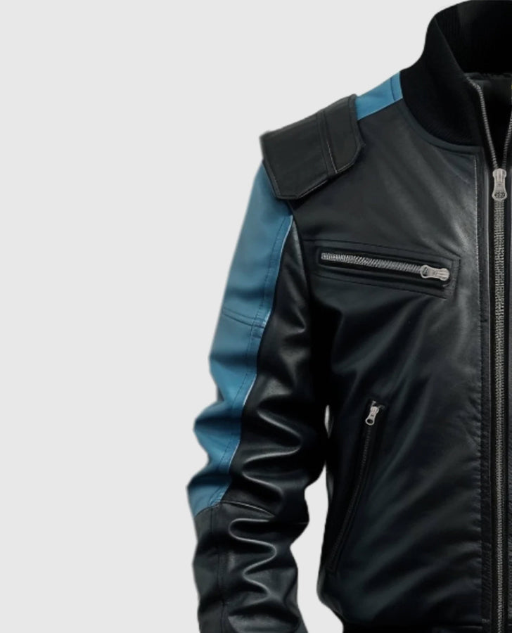 Be the first to review “Men’s Blue Black Bomber Leather Jacket” Cancel reply