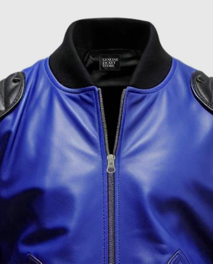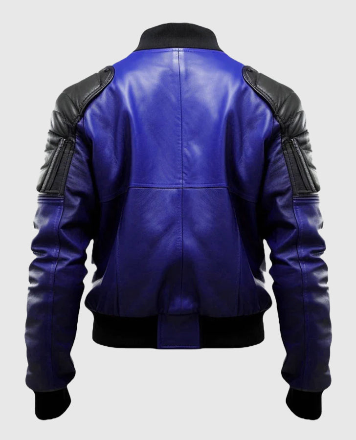 Be the first to review “Men’s Blue & Black Leather Bomber Jacket” Cancel reply