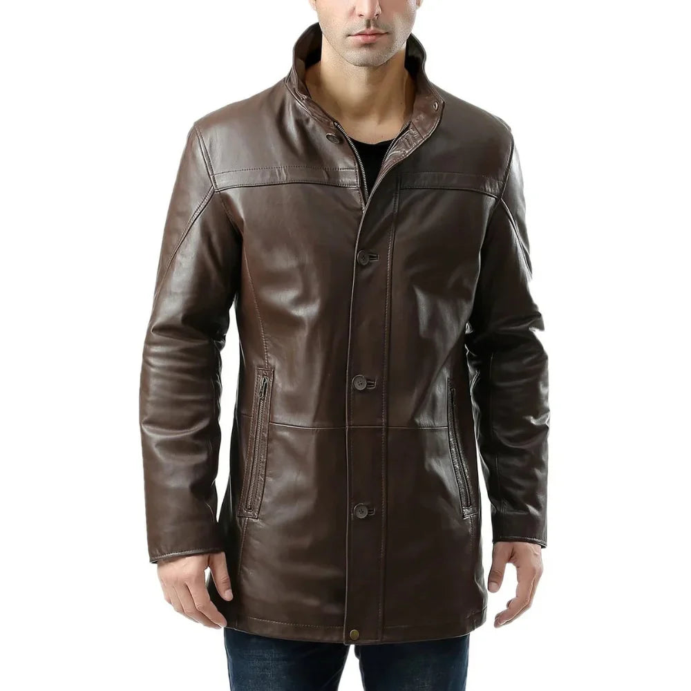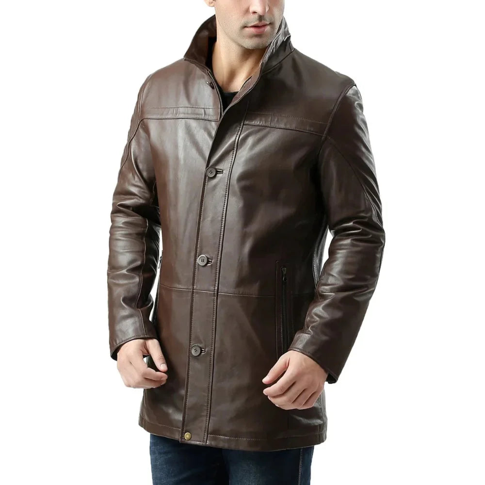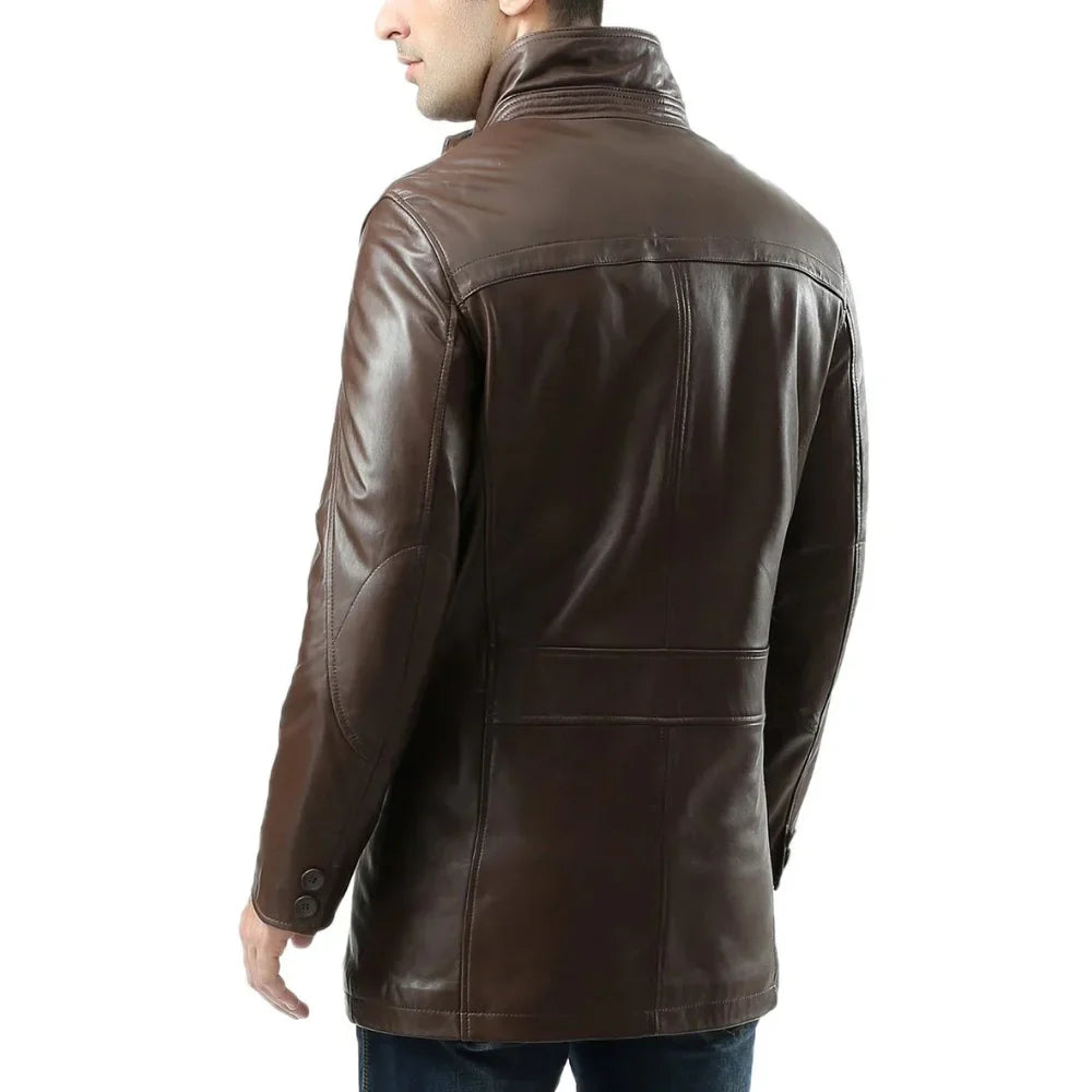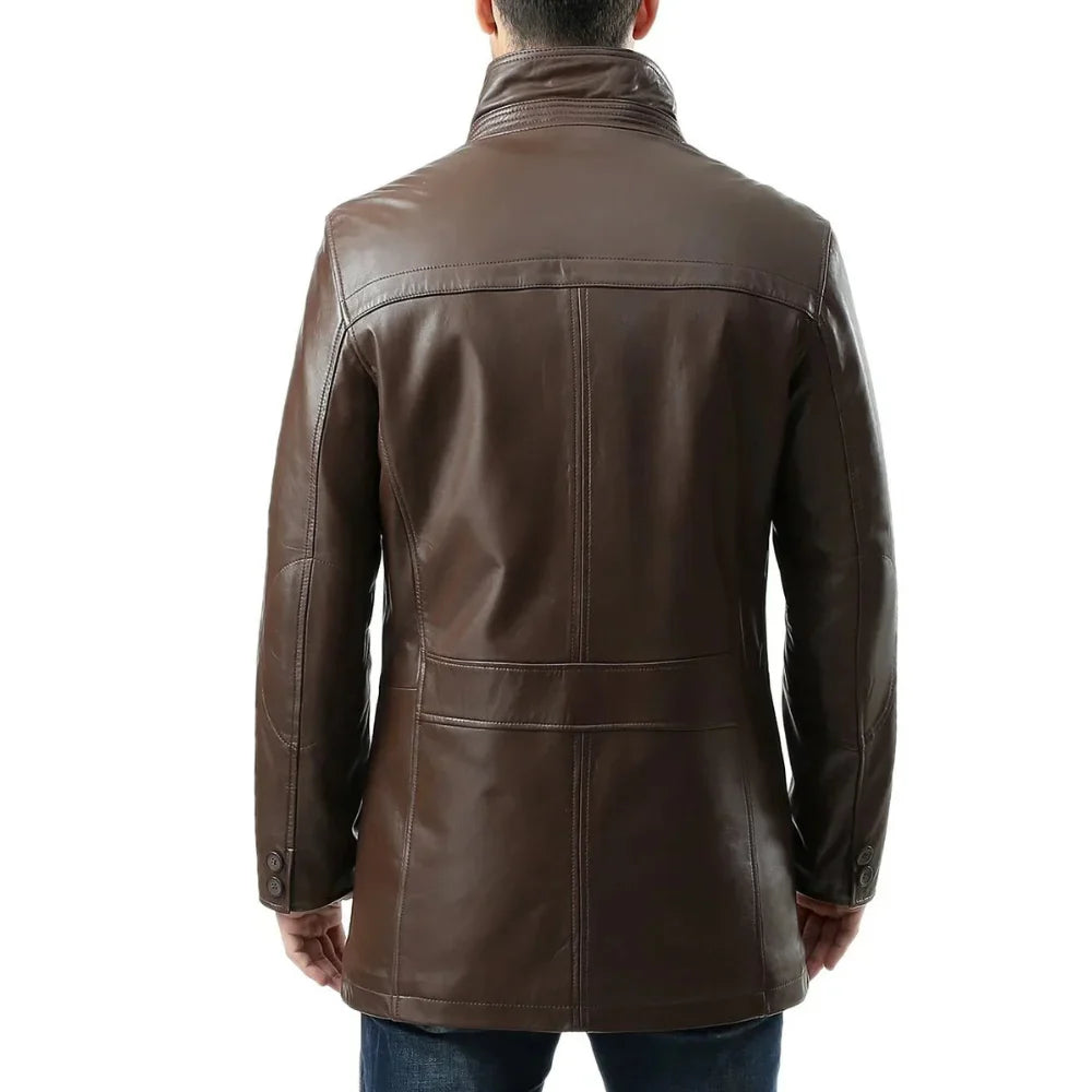Men’s Lambskin Chocolate Brown Leather Car Coat